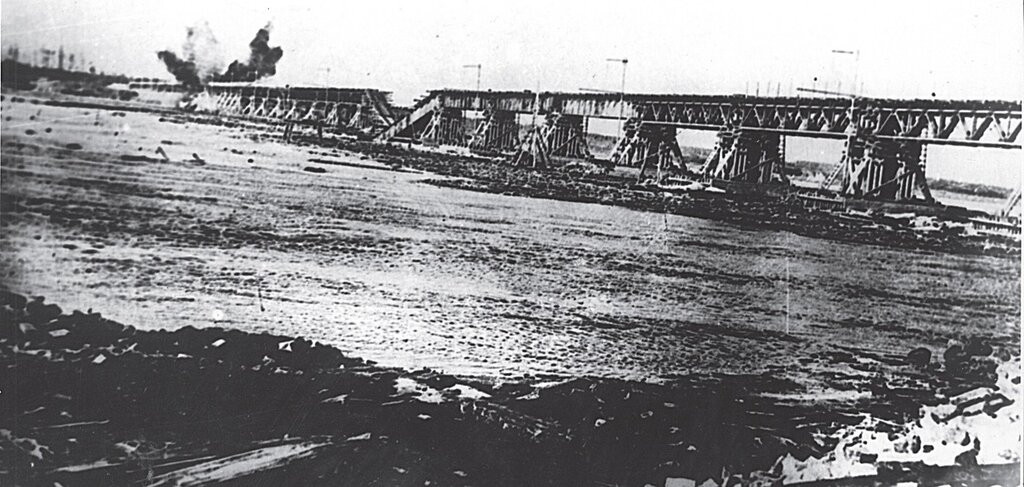 051 Разрушение в результате немецкого артобстрела временного моста через Неву на линии Поляны — Шлис