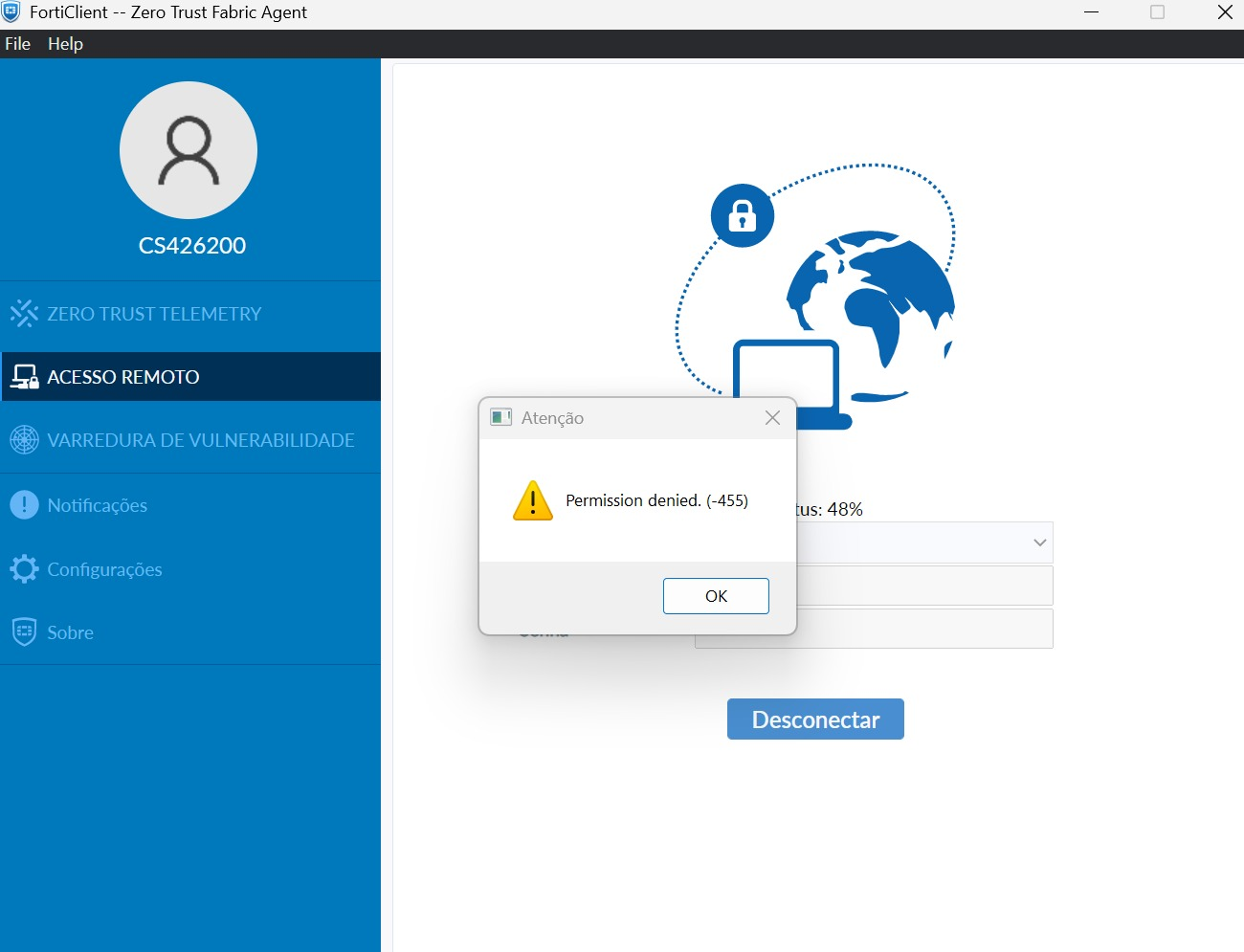 Some errors have occured and the system couldn't process your request.