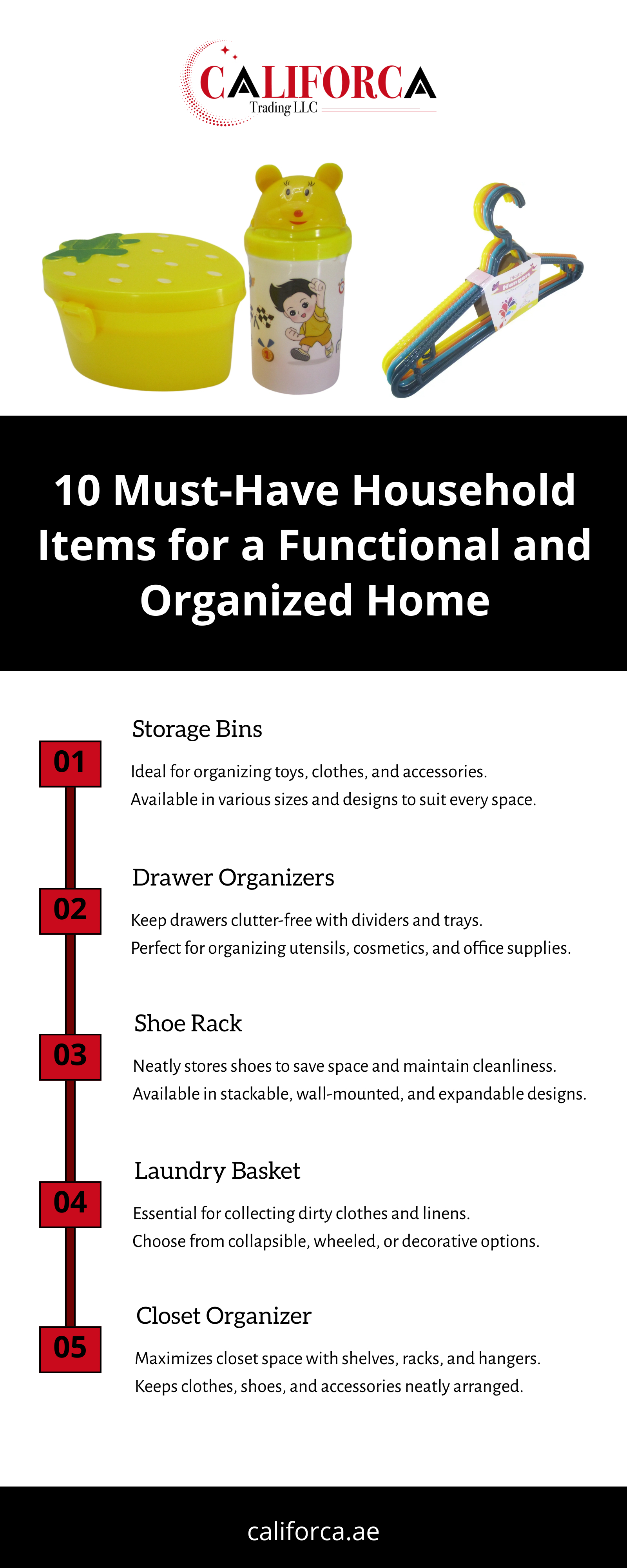 Califorca is a website that offers a wide selection of household items. From kitchenware to cleaning supplies, organizing solutions to home decor, you can find all your essential household items in one place. Whether you are moving into a new home, redecorating, or simply replenishing your supplies, Califorca has everything you need to make your house a cozy and functional space. With high-quality products and competitive prices, shopping for household items has never been easier.