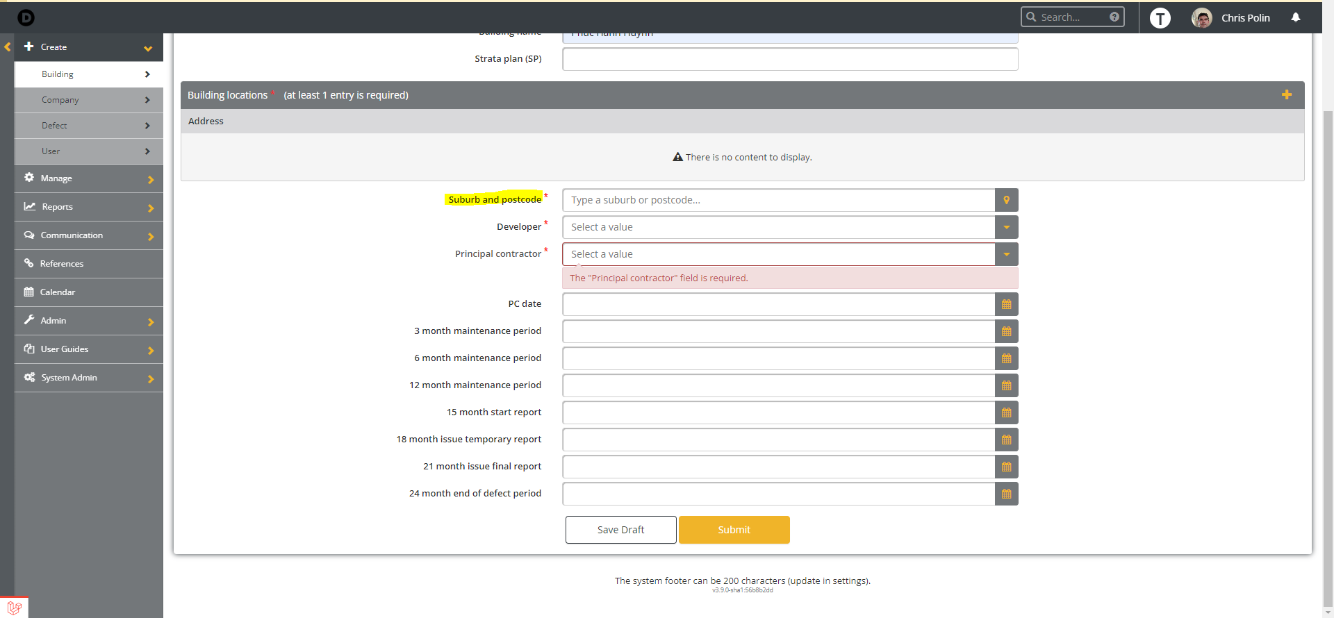 Some errors have occured and the system couldn't process your request.