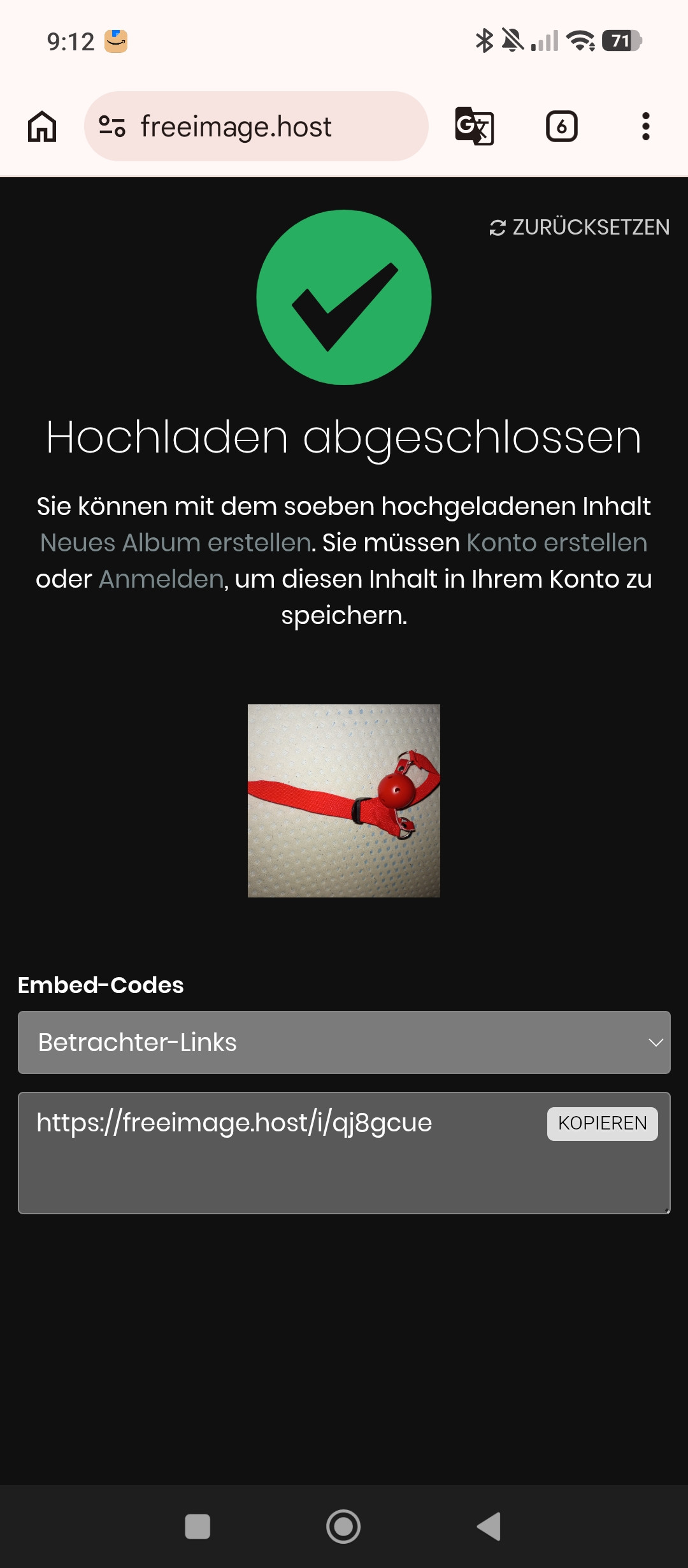 You can create a new album with the content just uploaded. You must create an account or sign in to save this content into your account.
