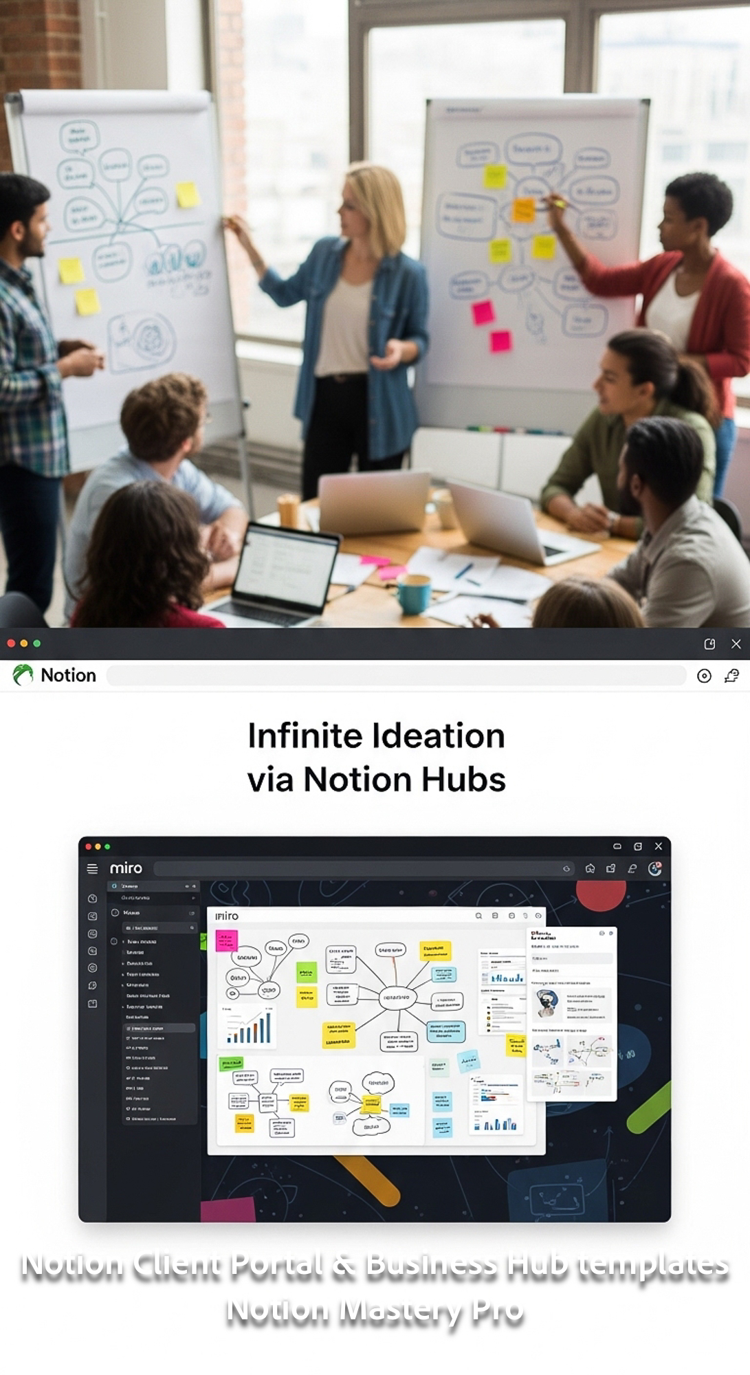 104 Blurred background of a creative brainstorming foreground screen showing a Notion Miro Embed Ove