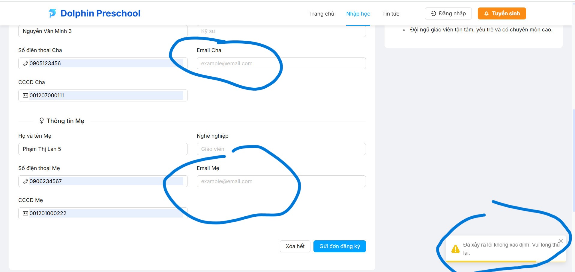 Some errors have occured and the system couldn't process your request.