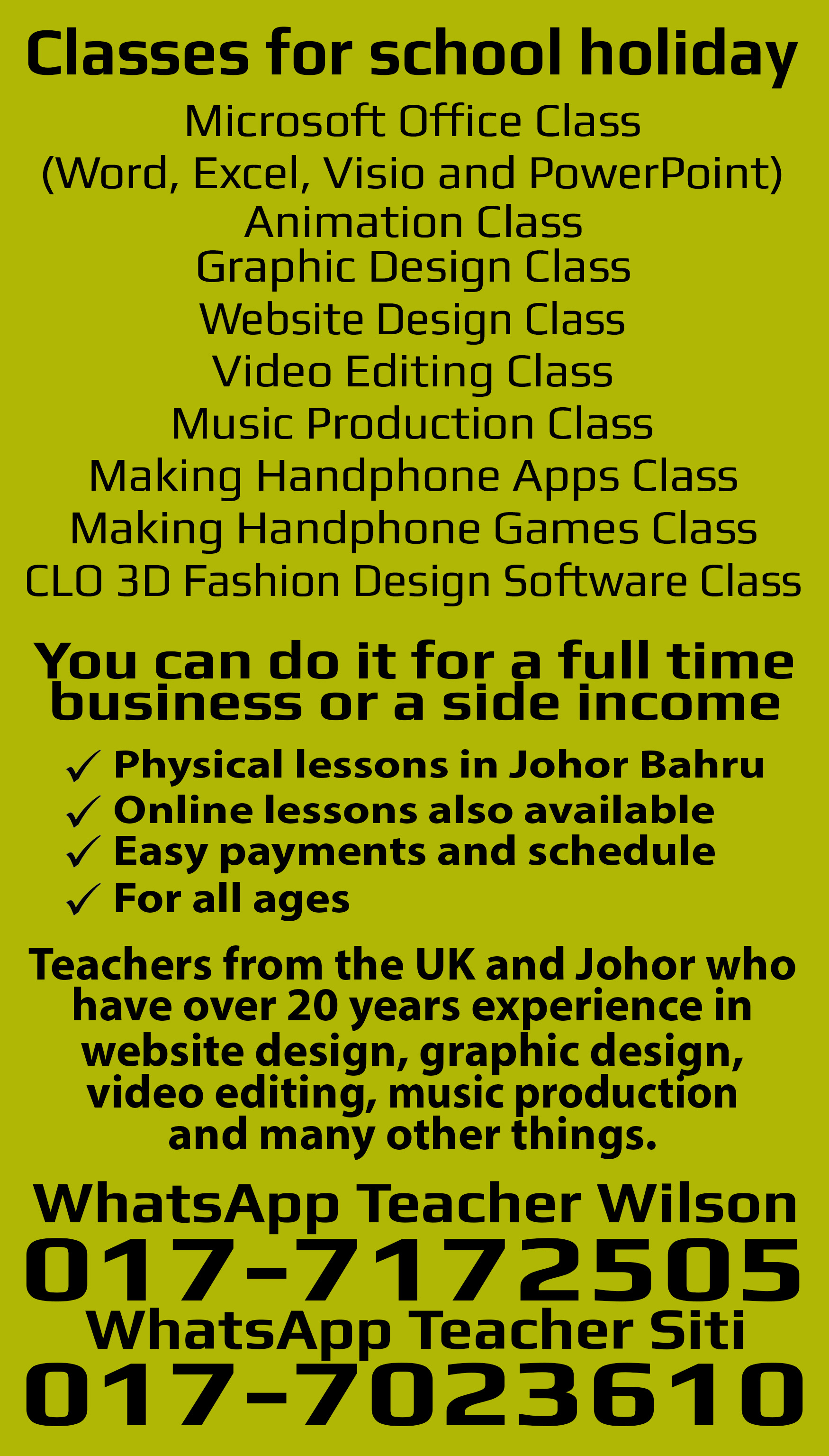 13 school holoday programs class lesson jb