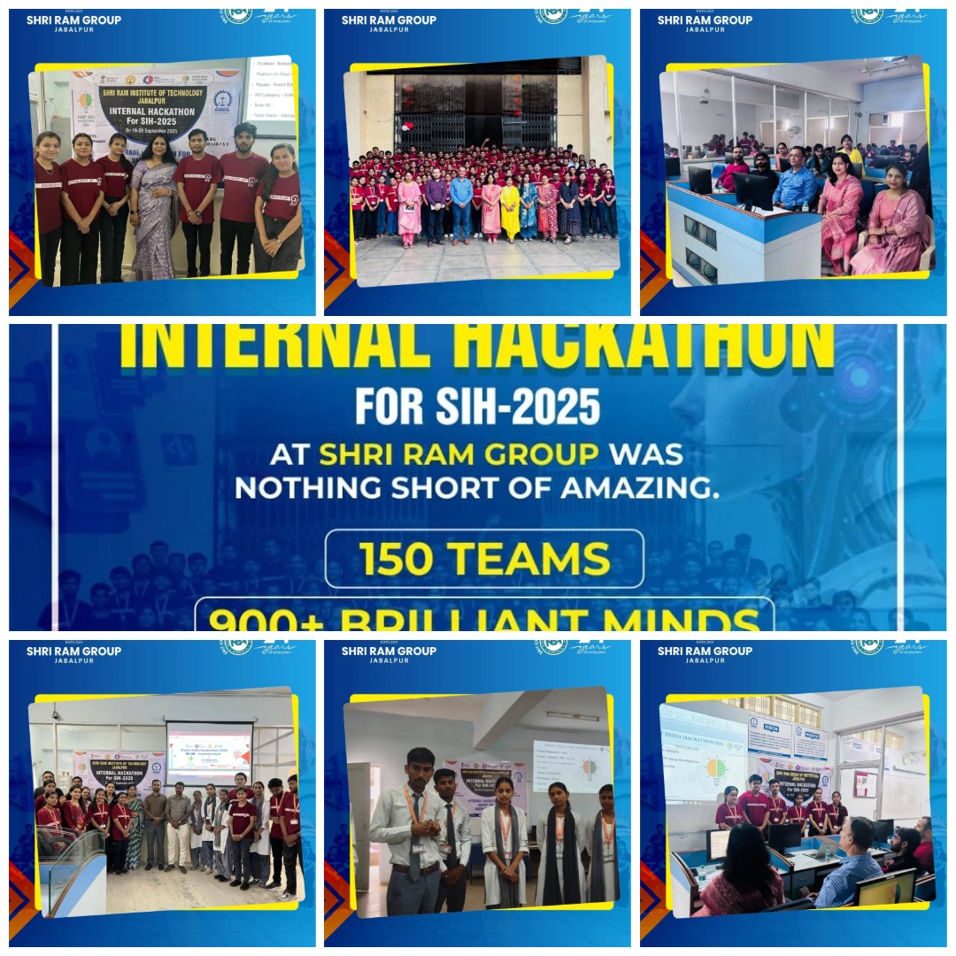 Shri Ram Group Jabalpur had recently hosted an electrifying 2-day event of Internal Hackathon 2025. Organized as an initiative to the Smart India Hackathon Mega Event by the best private engineering college in Jabalpur, everyone will remember it as a landmark event in the history of the institution. The entire campus was abuzz with positive vibes and energy based on staggering performances by 900 participants comprising of 150 teams.