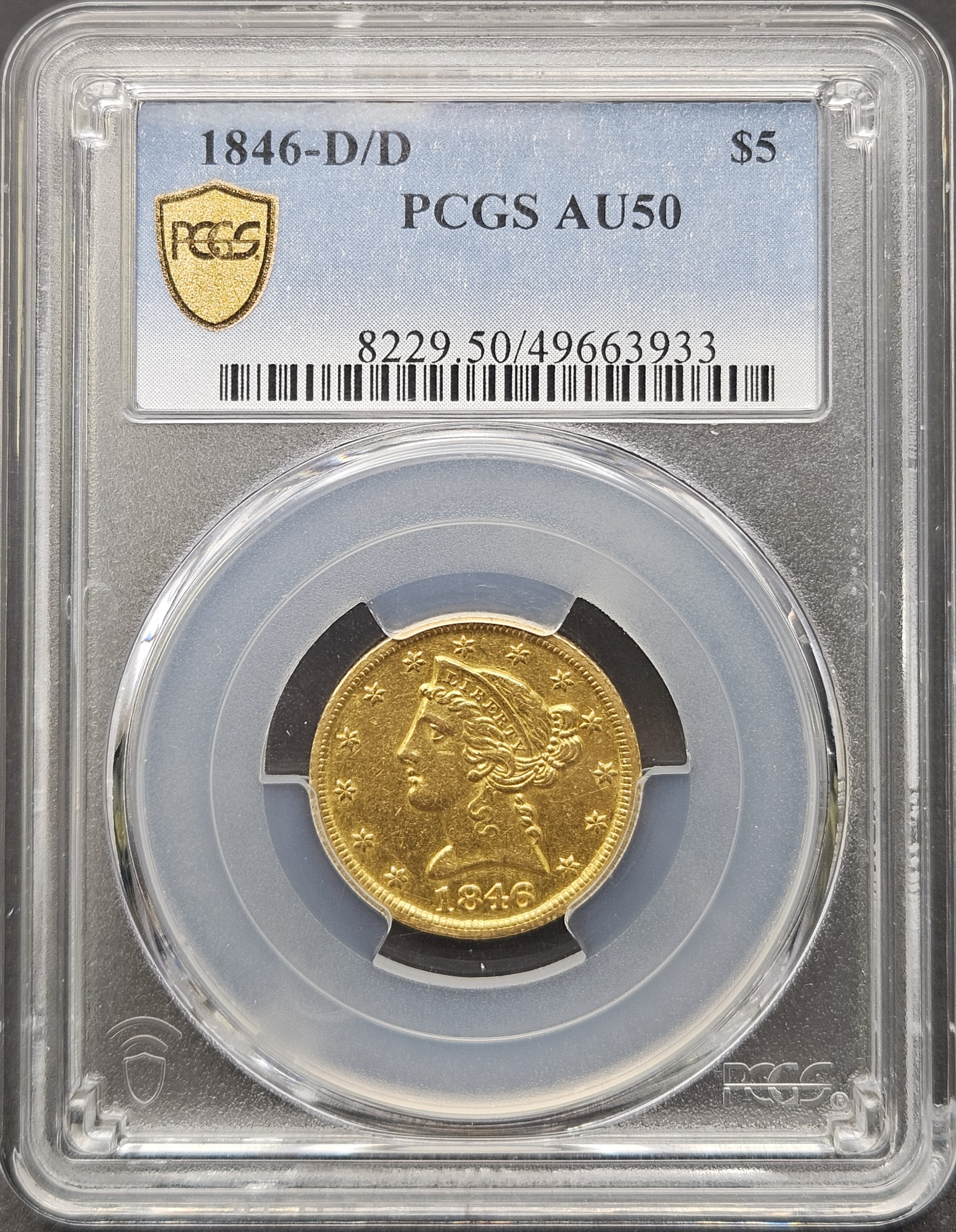 1846 DD $5 PAU50 OBV