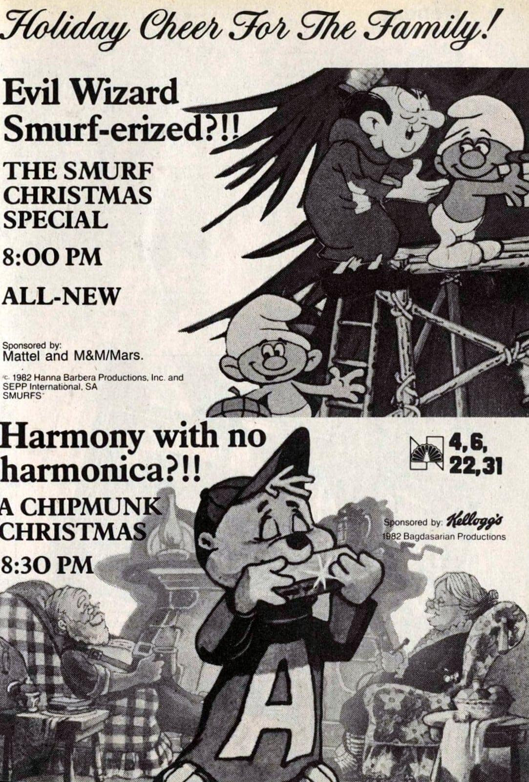 1982 cartoon TV specials Chipmunk and Smurfs