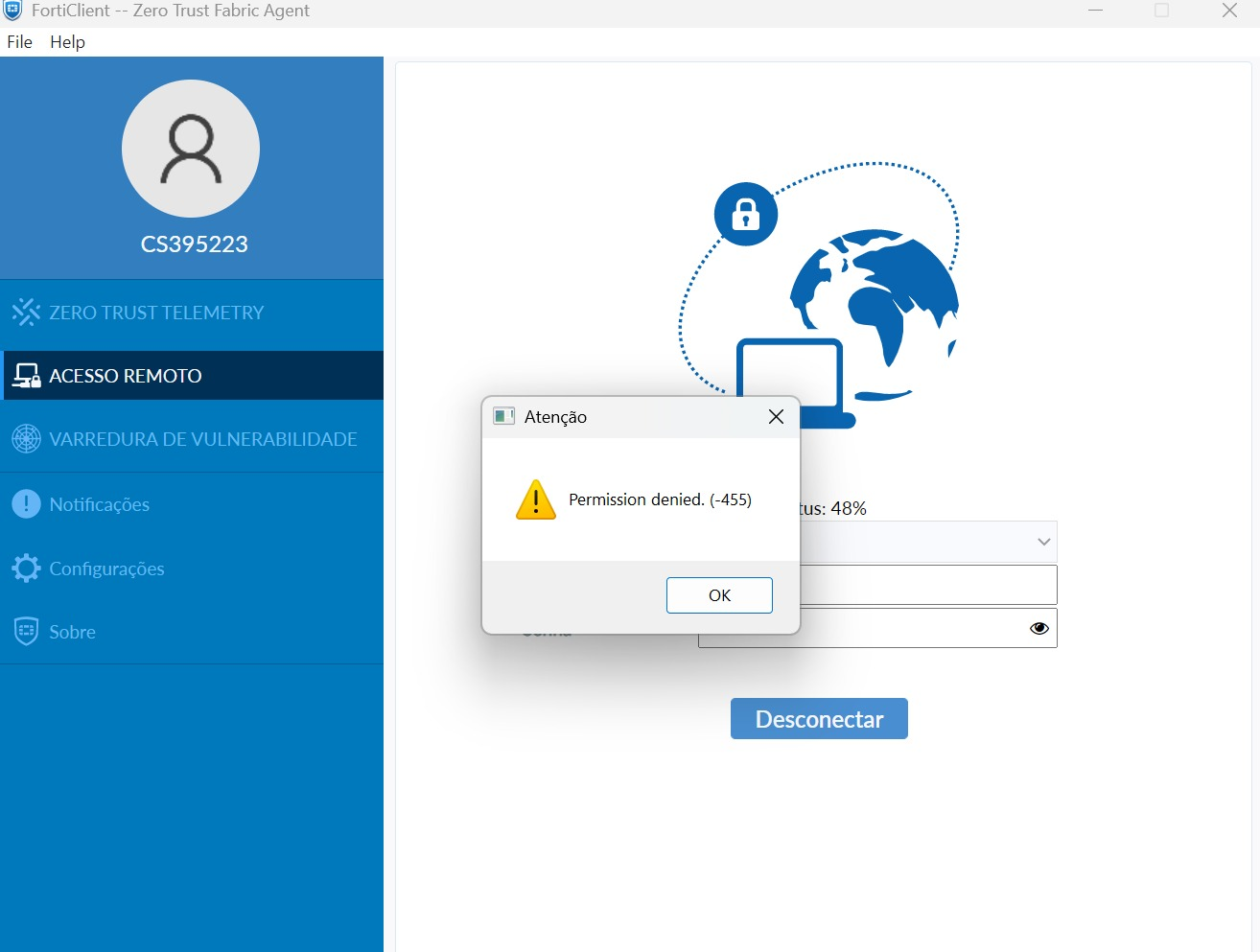 Some errors have occured and the system couldn't process your request.
