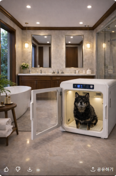 1층 욕실에 있는 펫드라이룸 안에 있는 레오모습