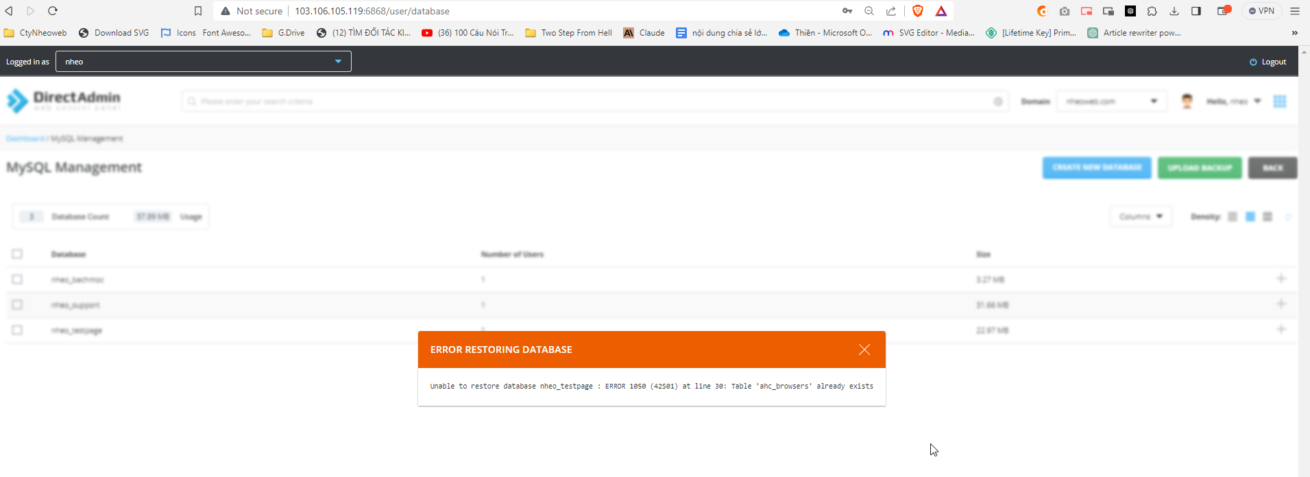 Some errors have occured and the system couldn't process your request.