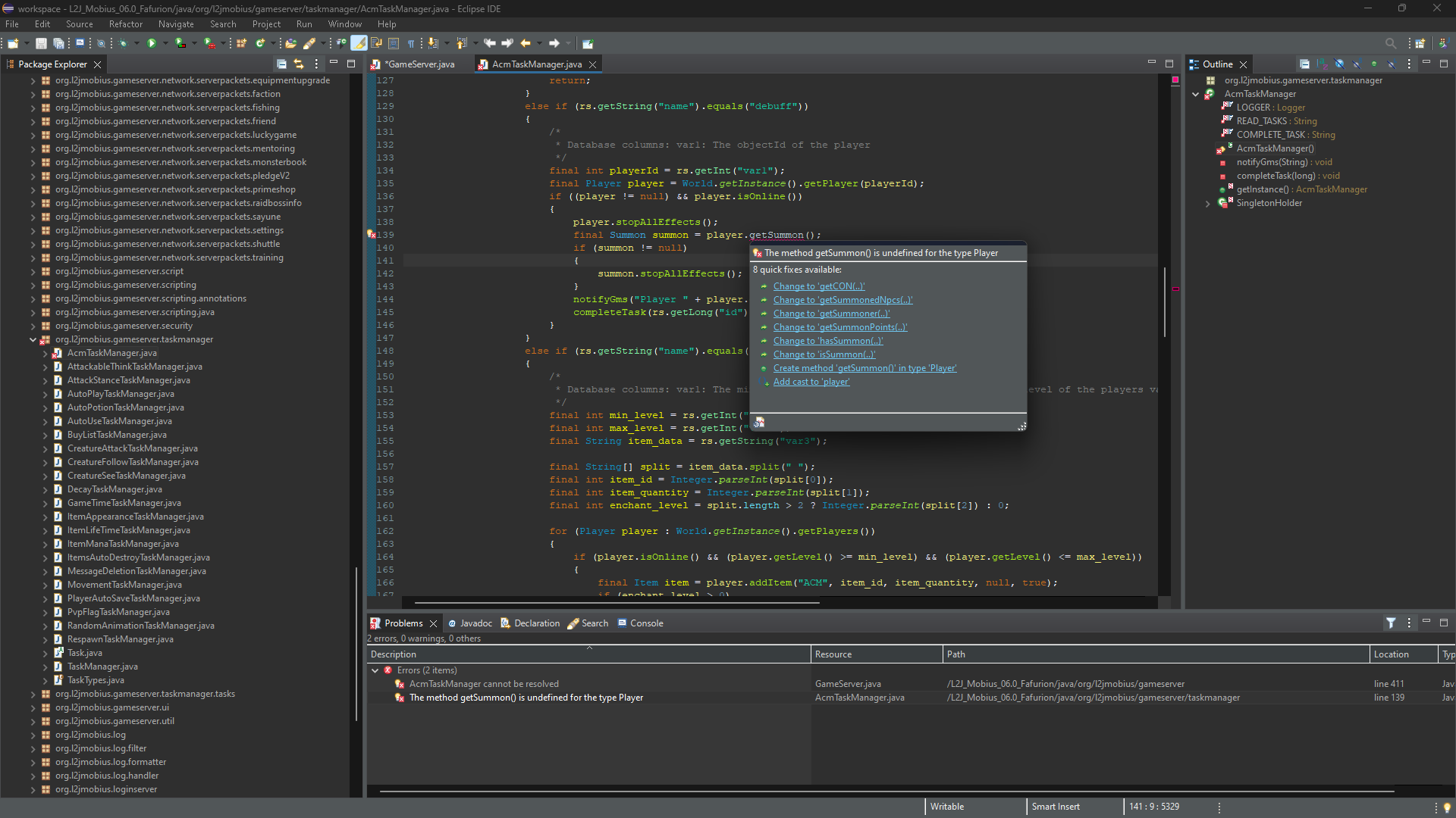 Check the error report for more information.