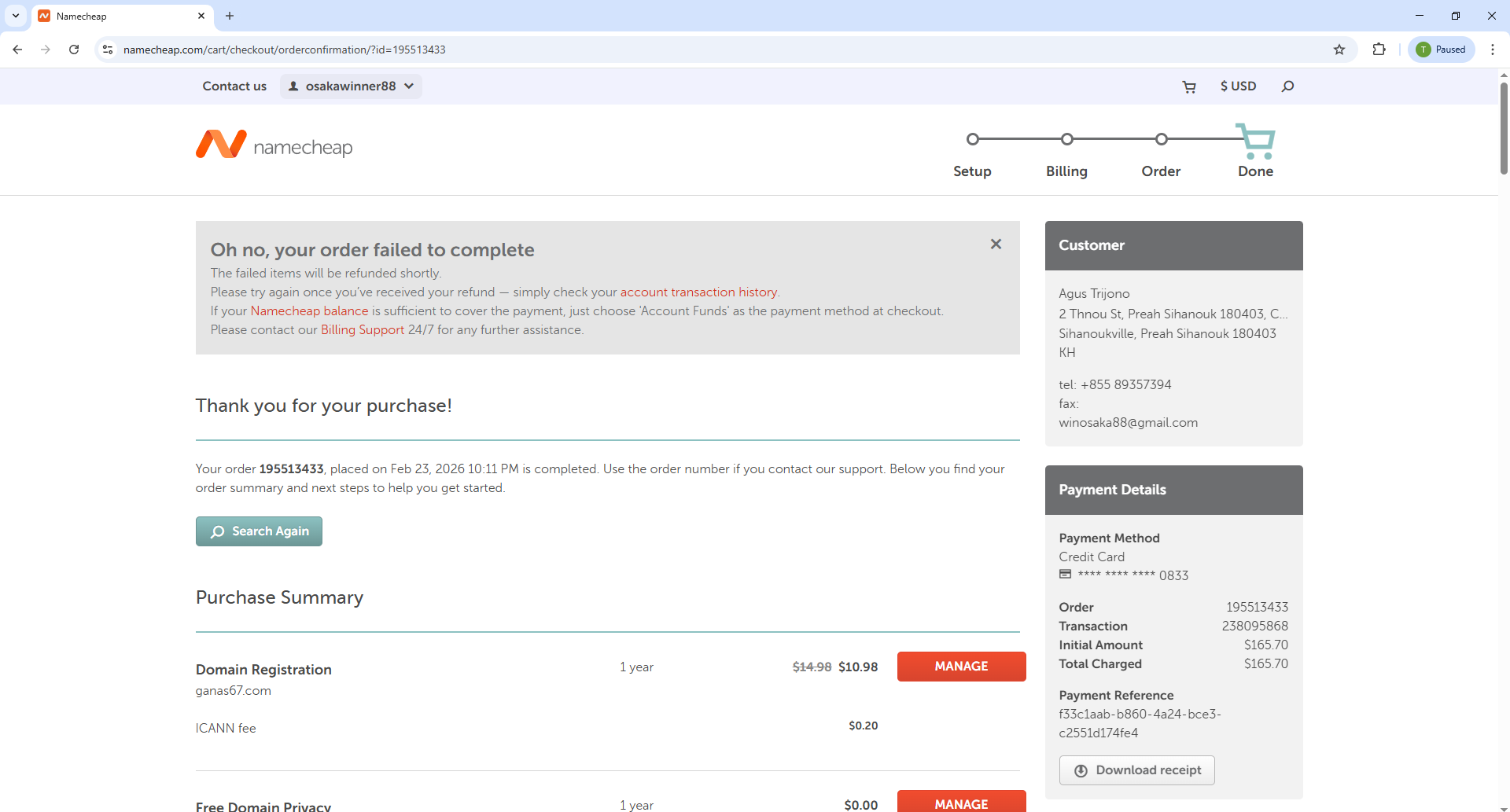 Check the error report for more information.