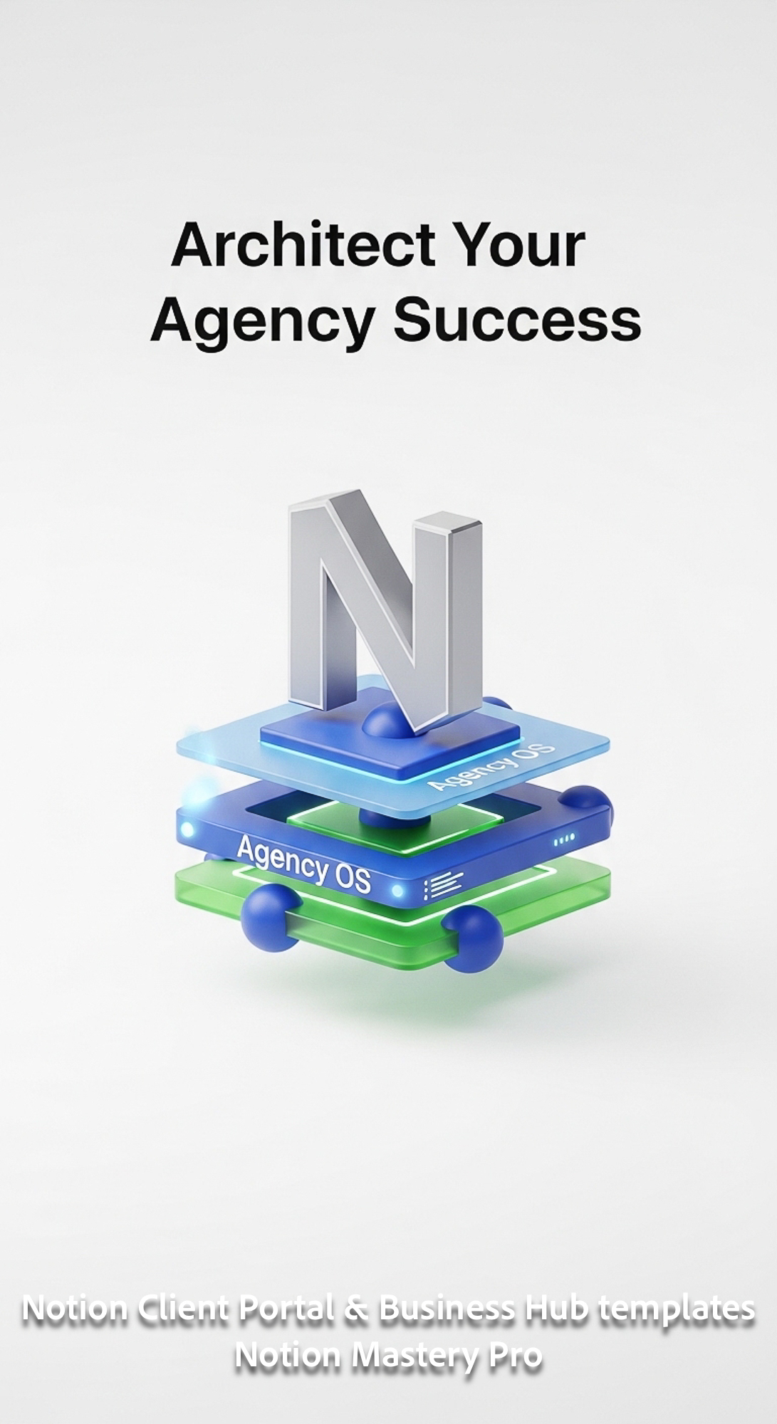 205 Minimalist 3D icon of a N sitting on top of a digital Agency OS structure Overlay Architect Your