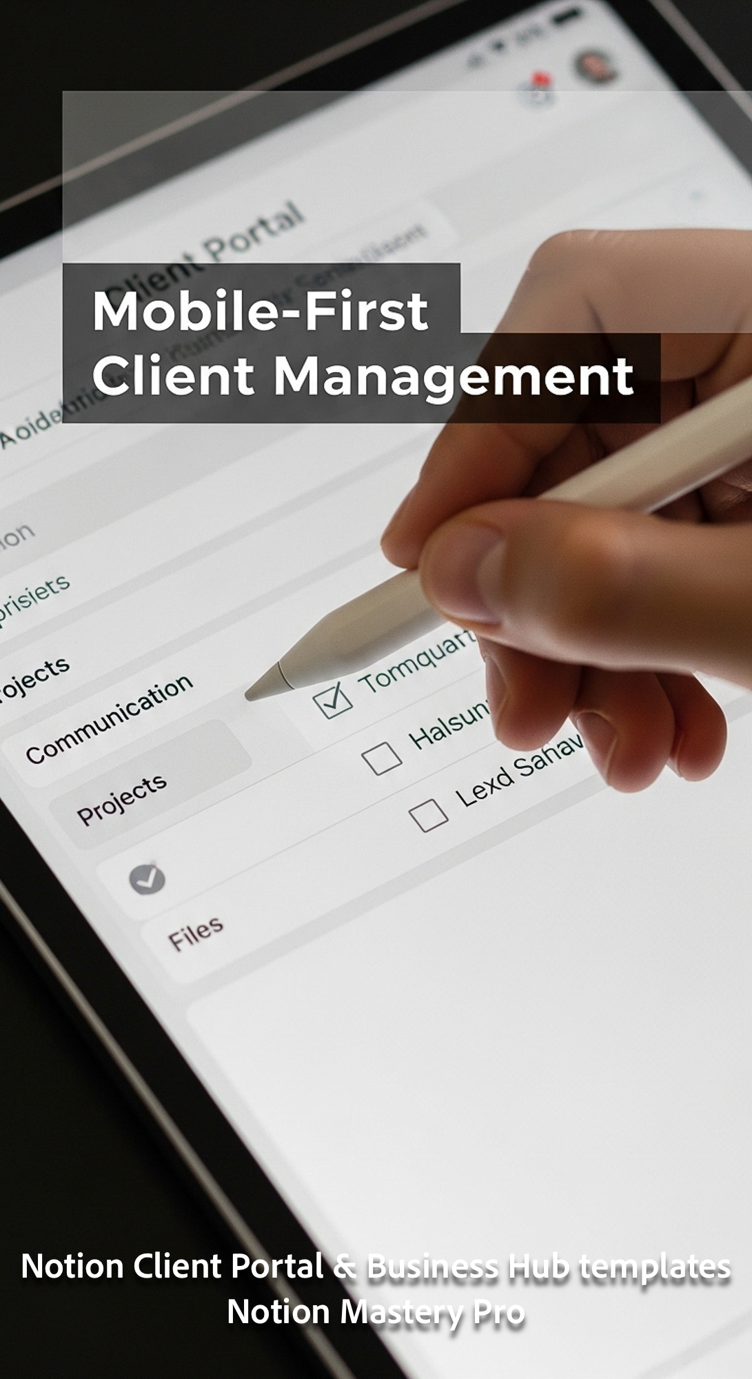 214 Closeup of a hand checkmarking a task in a Notion Client Portal app Overlay MobileFirst Client M