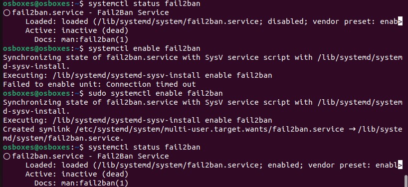 23 Status en enable fail2ban