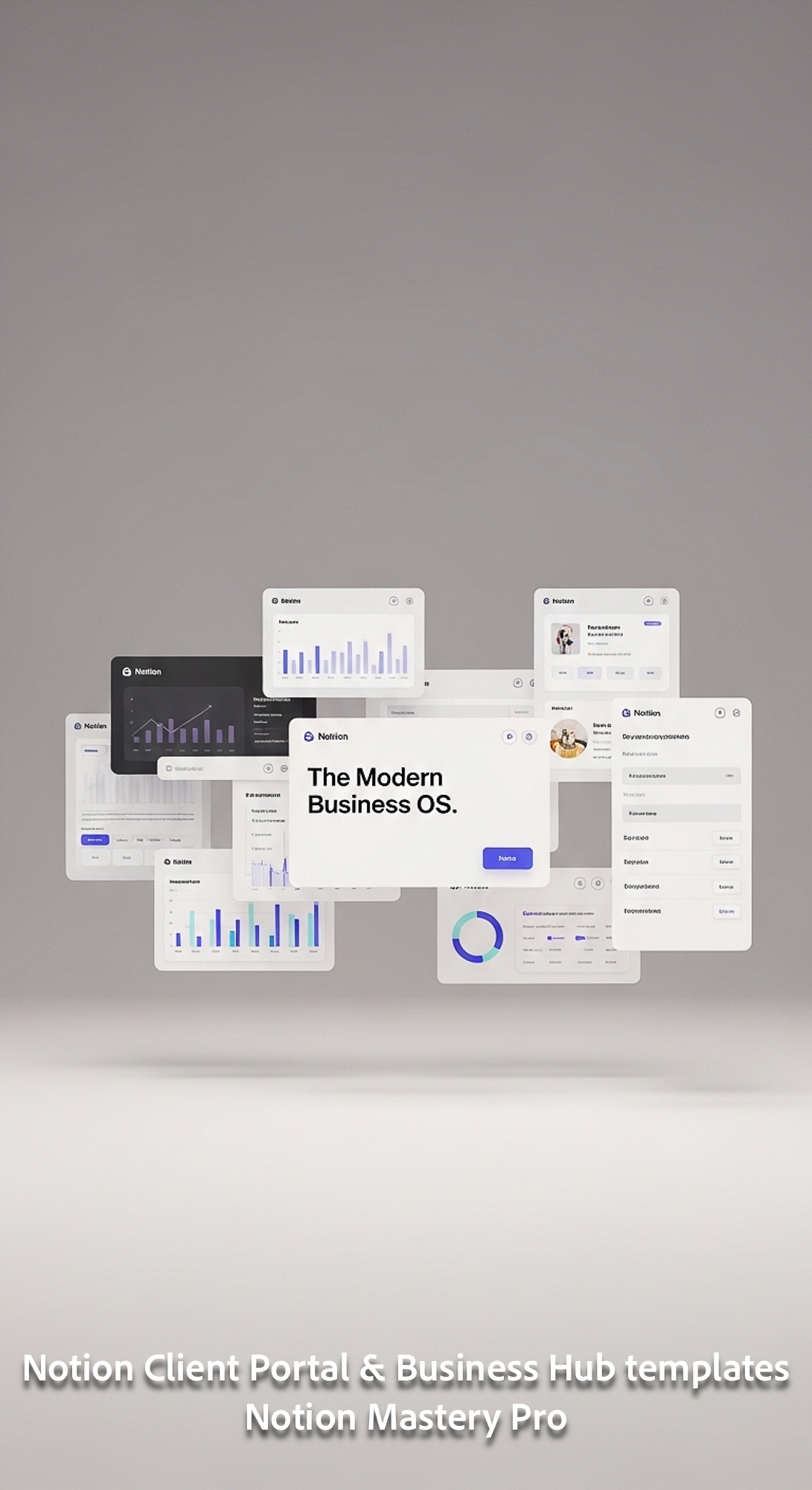 254 Minimalist 3D render of a digital Agency Hub with Notionstyle UI panels floating in space Overla