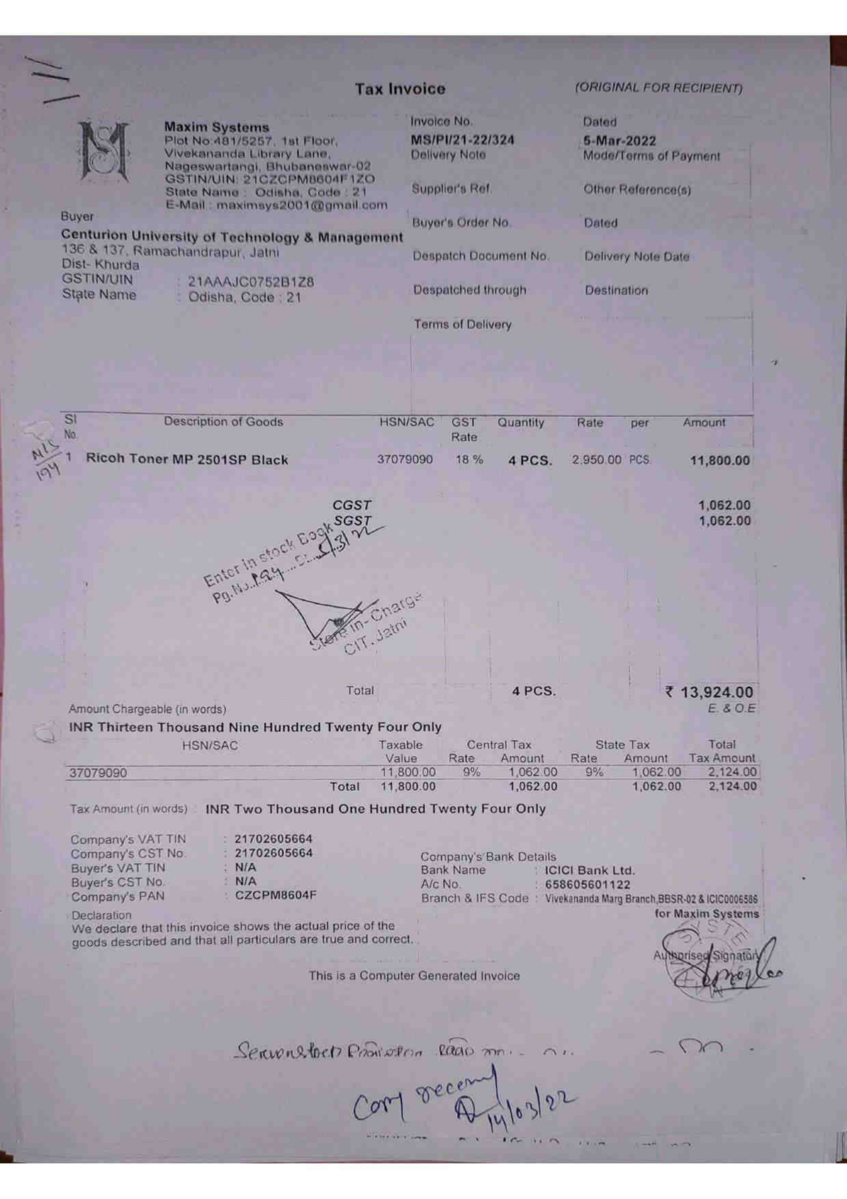 3 Bills of purchase of computerpage 86