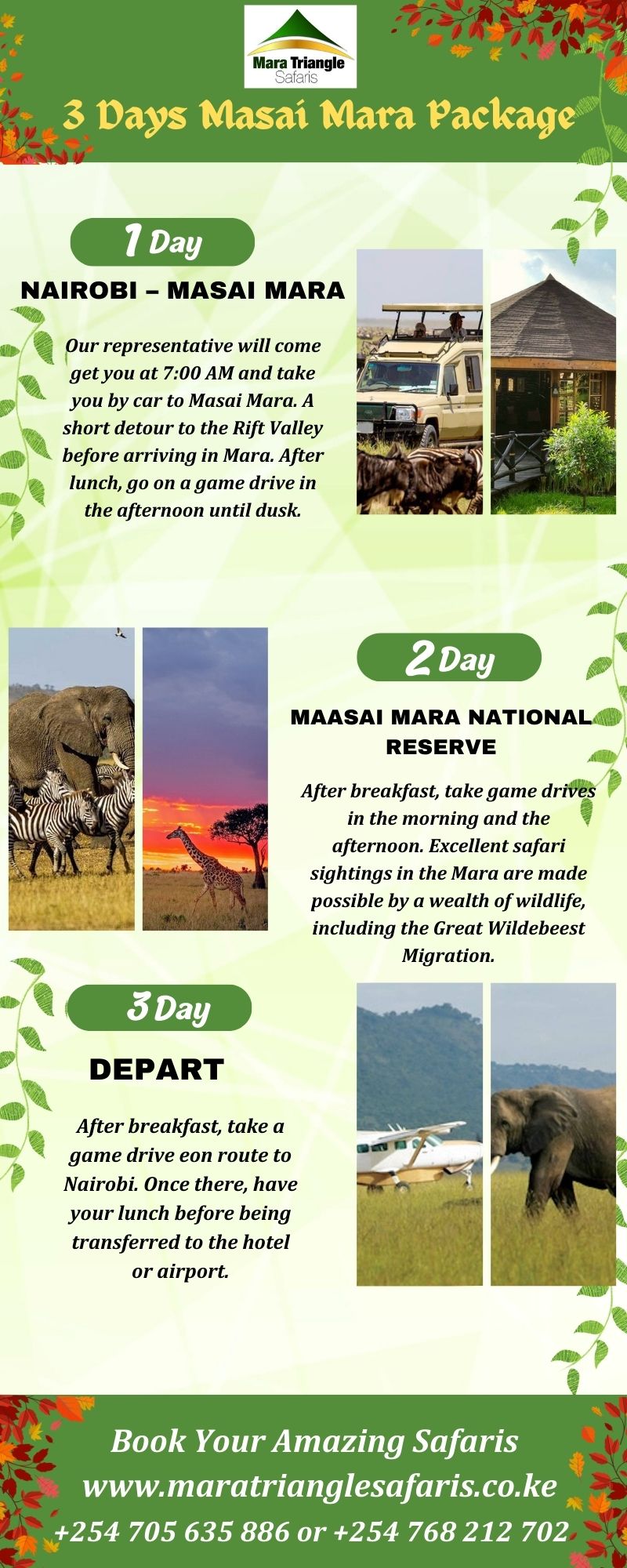 Discover the world-famous park in Kenya with Mara Triangle Safaris. Enjoy an opulent encounter in a permanent tented camp, where you are free to select the lodging of your choice. Take a luxurious ride with a personal driver in a private safari vehicle. This will be an unforgettable safari experience that you won't soon forget. This safari has to be experienced once in your lifetime. Make your safari reservation right now at maratrianglesafaris.co.ke, or give us a call at +254 705 635 886.