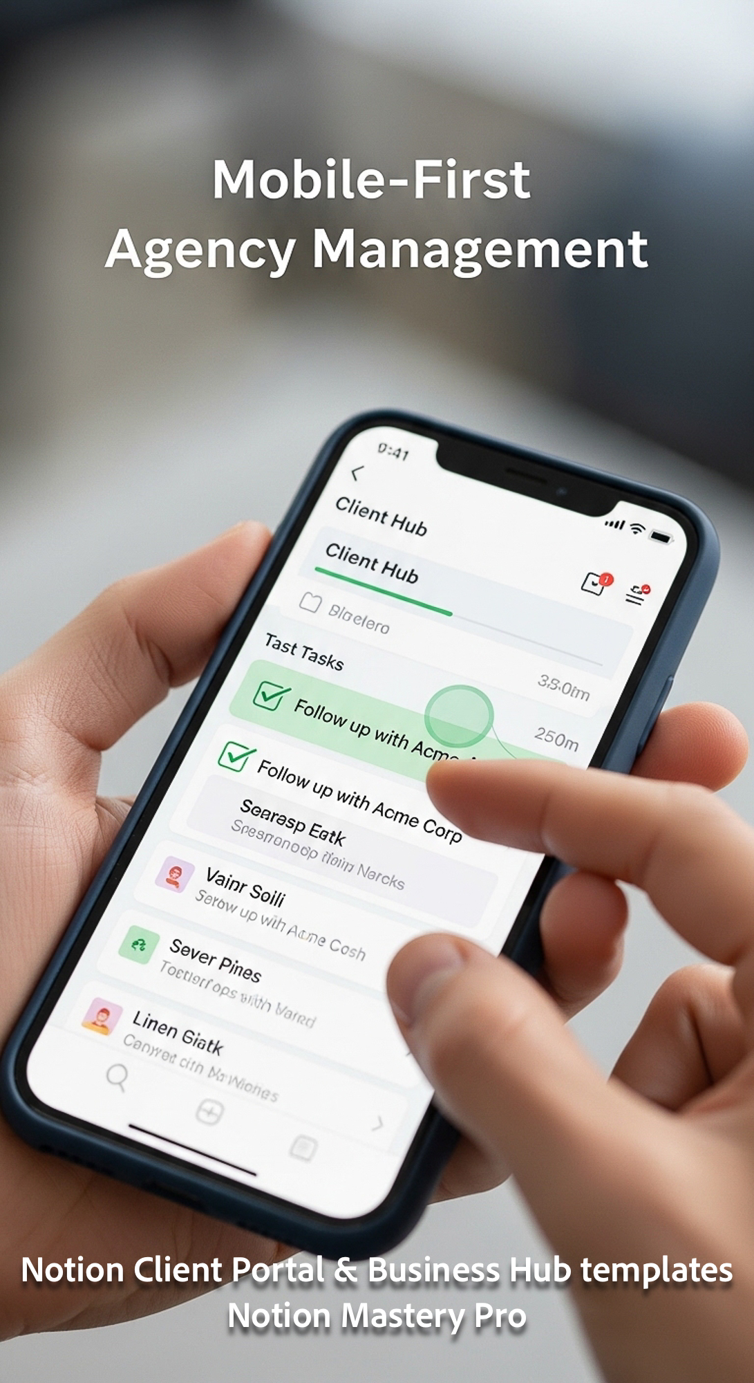 313 Closeup of a hand checkmarking a task in a Notion Client Hub mobile app on a phone Overlay Mobil