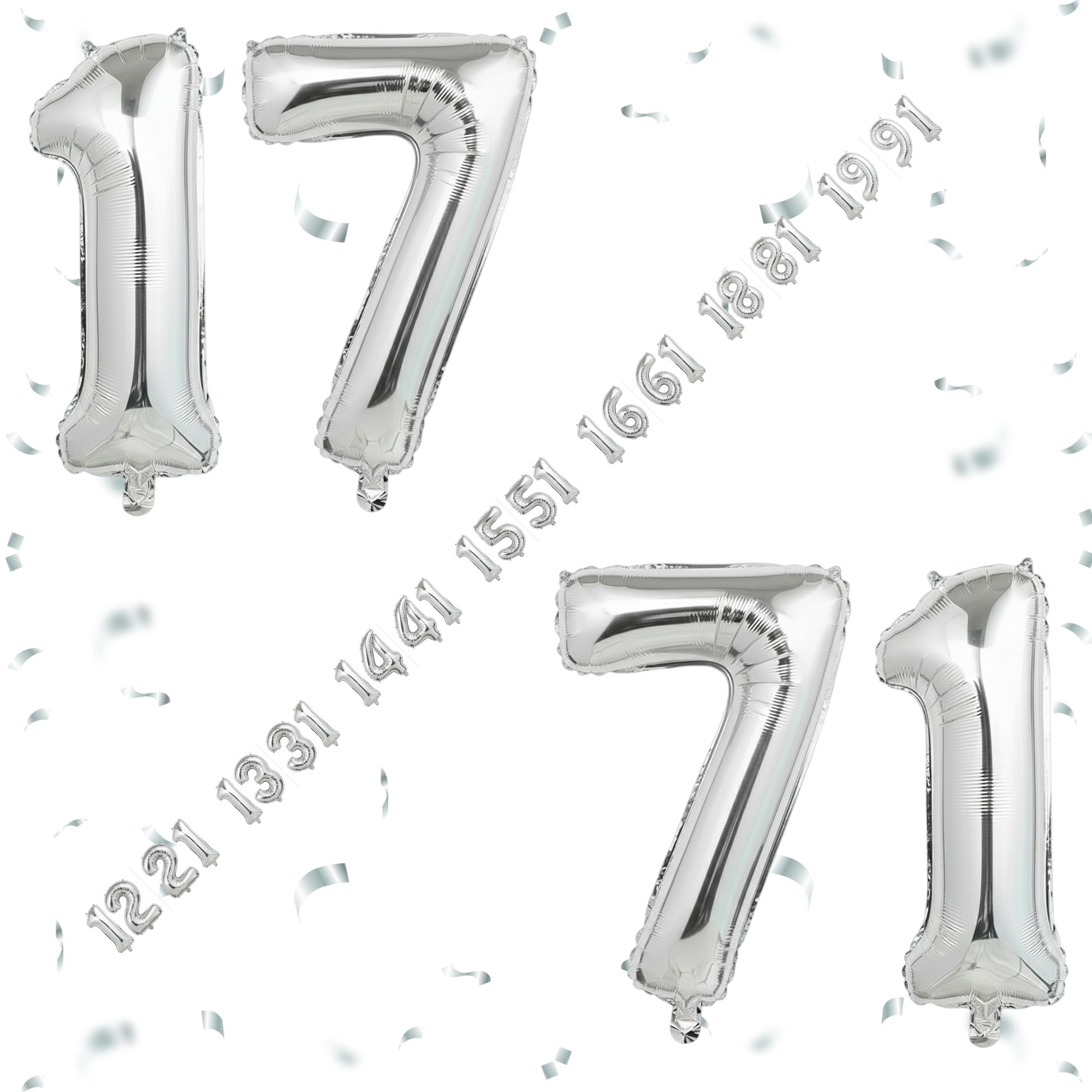 32 Inch Big Sliver Large Number 17 71 Mylar Foil Balloon For Helium & Air Filled Premium Self Seal B