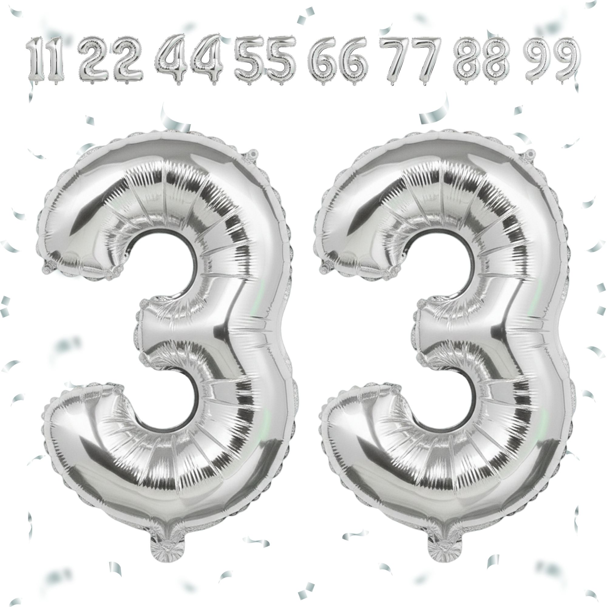 32 Inch Big Sliver Large Number 33 Mylar Foil Balloon For Helium & Air Filled Premium Self Seal Ball