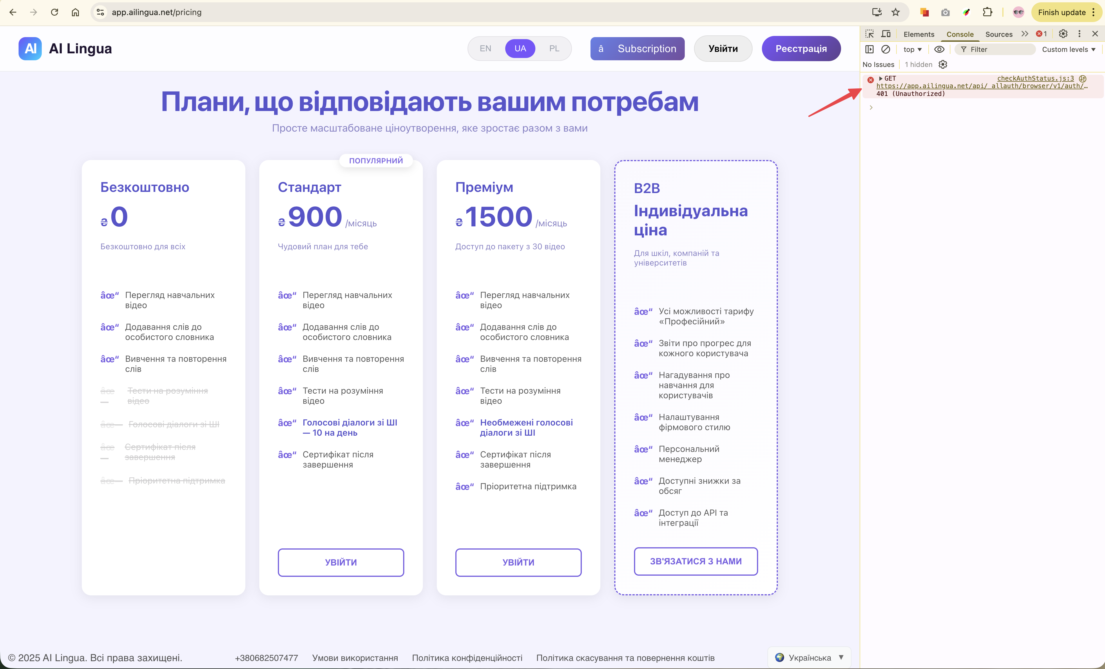 Check the error report for more information.