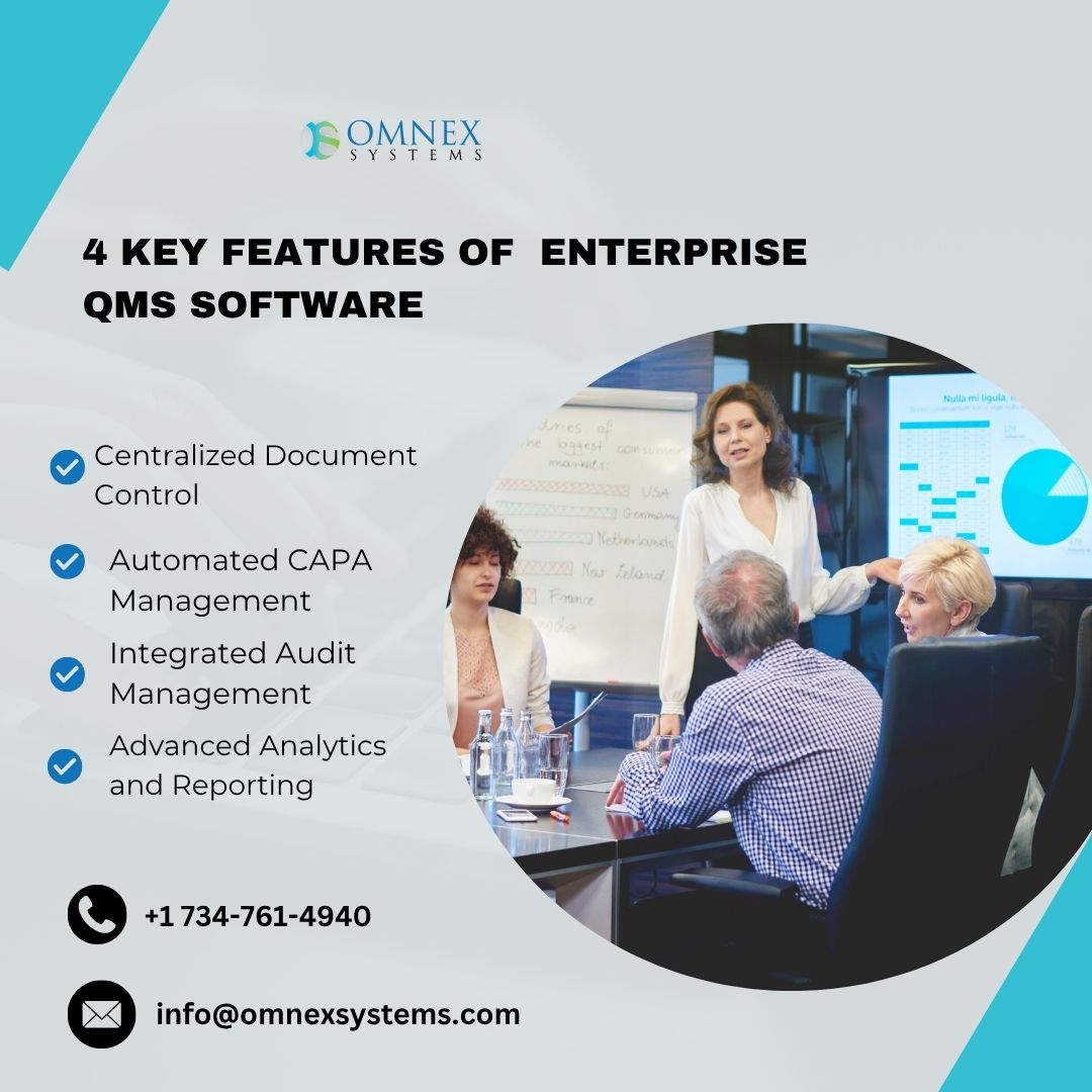 Enterprise QMS Software by Omnex Systems empowers organizations to achieve excellence in quality management through integrated, data-driven solutions. Designed for global enterprises, it streamlines processes like document control, audits, CAPA, supplier management, and compliance tracking in a unified platform. The software enhances visibility, reduces risk, and ensures continuous improvement across operations. With real-time analytics and automated workflows, businesses can make informed decisions and maintain compliance with ISO, IATF, and other quality standards. Discover how Enterprise QMS Software from Omnex Systems transforms your quality management ecosystem, driving performance, consistency, and customer satisfaction.