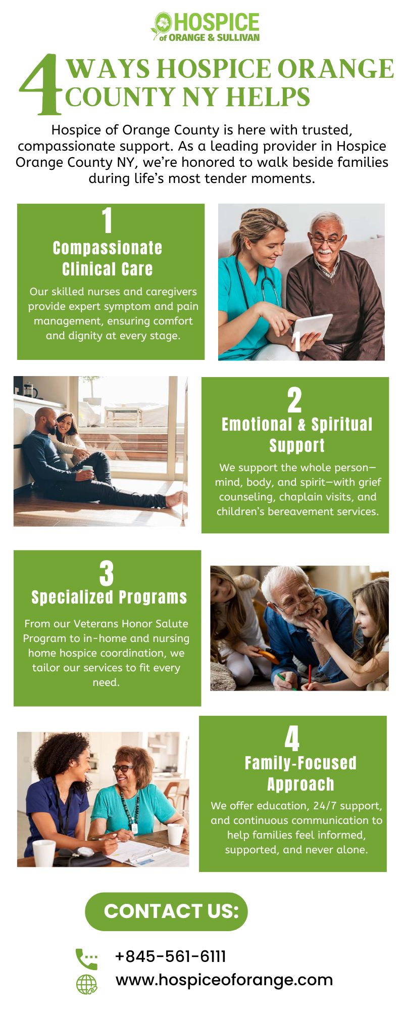 This infographic highlights 4 compassionate services offered by Hospice Orange County NY, making a difference in the lives of patients and their families every day.