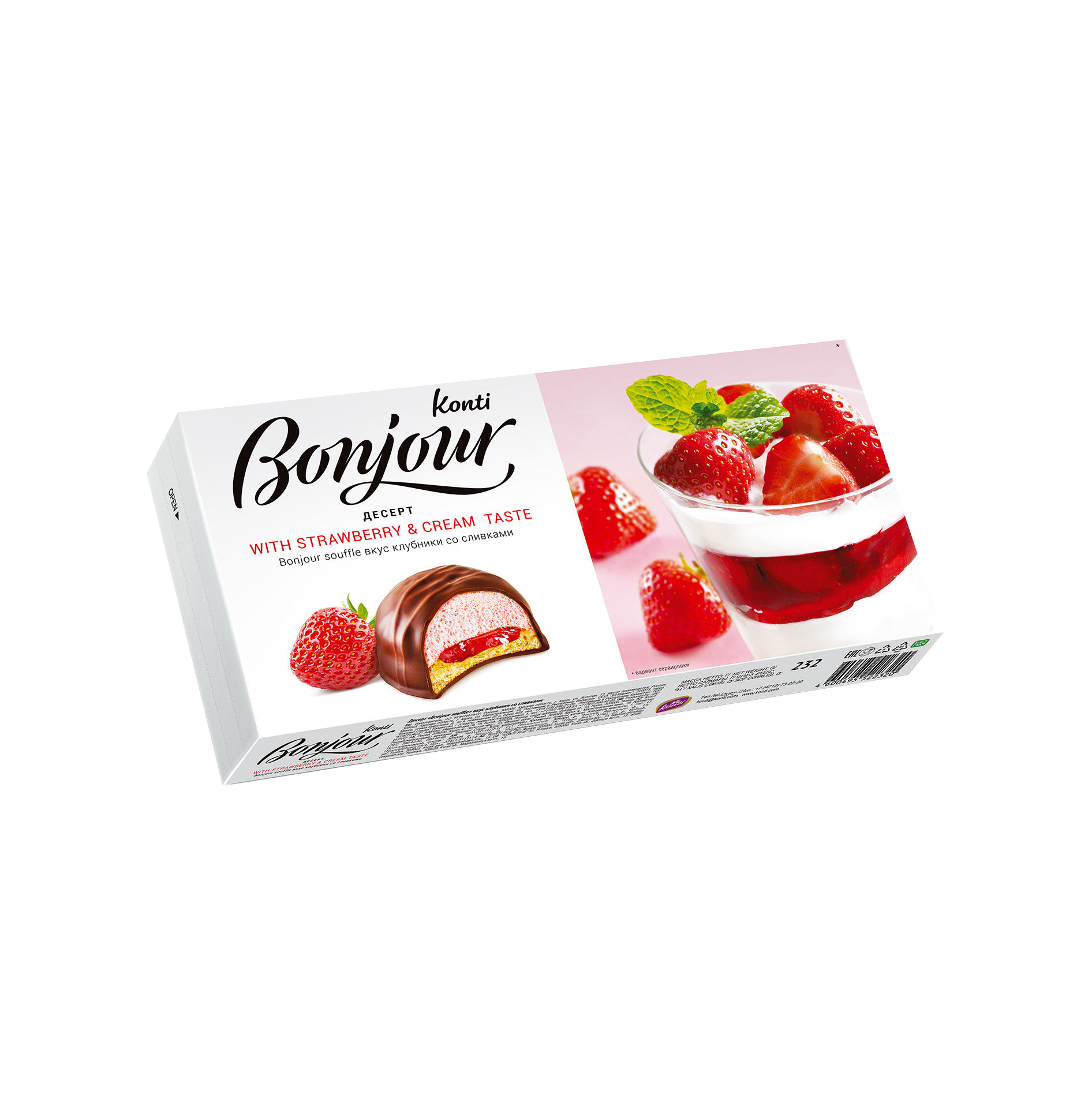 4600495522320 КОНФ. BONJOUR ДЕСЕРТ КЛУБНИКА СО СЛИВКАМИ 232 Г КОР.