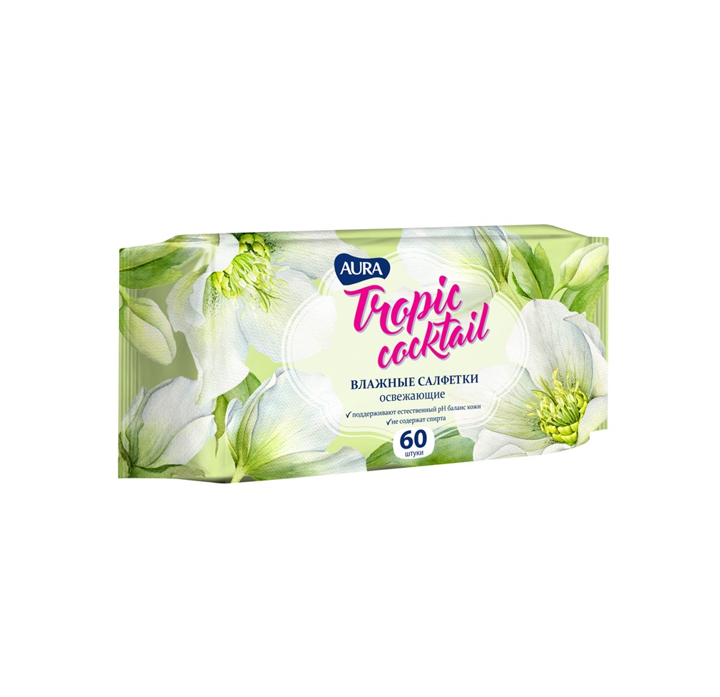 4600999006968 Салфетки Влажные Aura Tropic Coctail 60 Шт