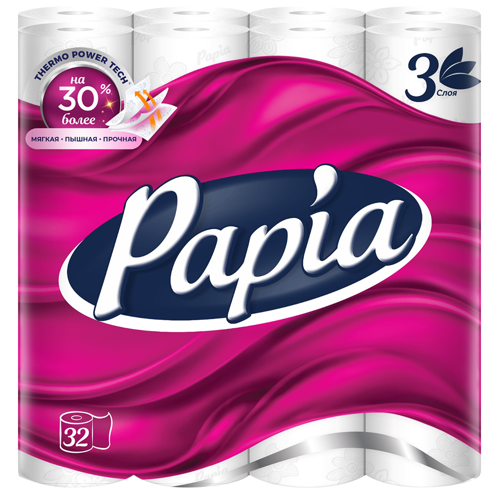 4604857000624 230350 БУМАГА ТУАЛЕТНАЯ PAPIA 3 СЛОЙНАЯ 32ШТ ГР УП