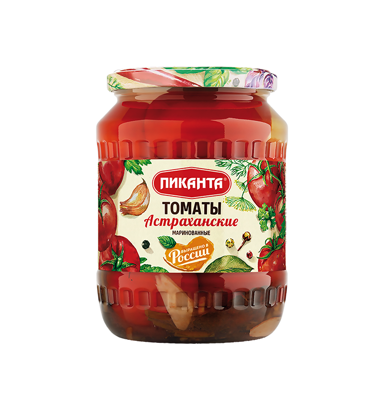 4607036205834 ТОМАТЫ АСТРАХАНСКИЕ МАРИНОВАННЫЕ ПИКАНТА 670 Г СТ.БАН.