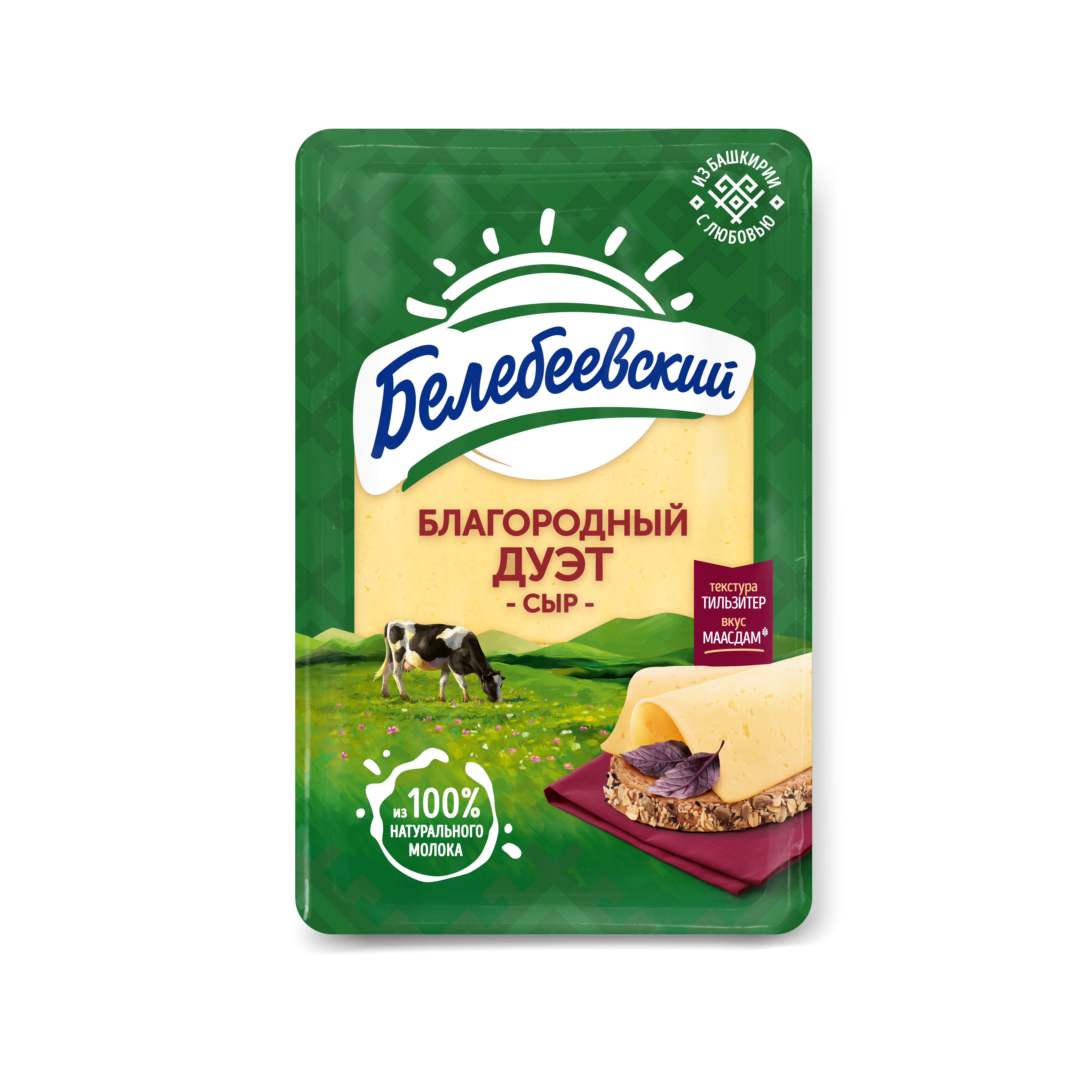 4607070737155 СЫР БЕЛЕБЕЕВСКИЙ БЛАГОРОДНЫЙ ДУЭТ 50% 120 Г СЛАЙСЫ