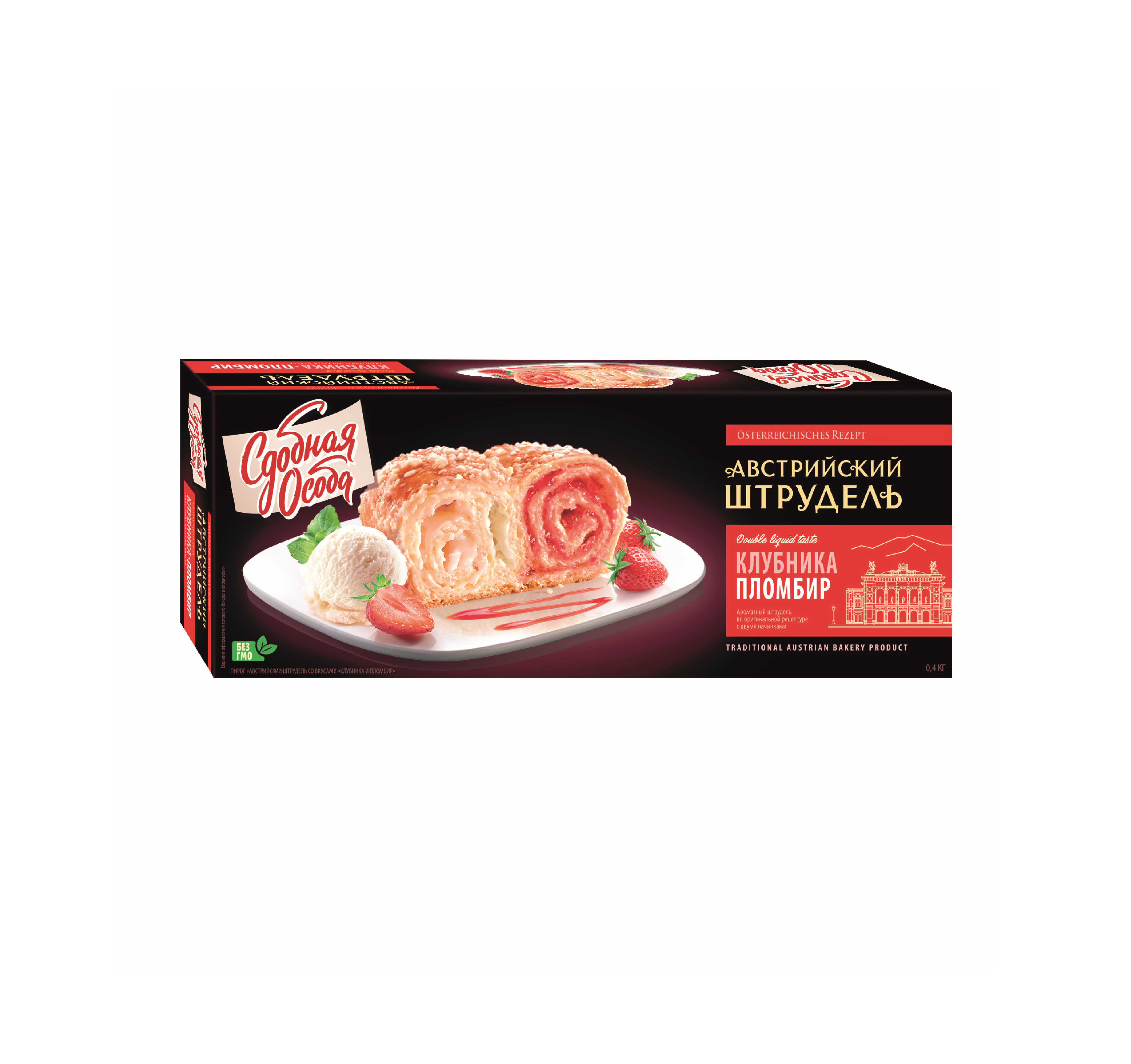 4607934470327 РУЛЕТ СДОБНАЯ ОСОБА АВСТРИЙСКИЙ ШТРУДЕЛЬ КЛУБНИКАПЛОМБИР 400 Г