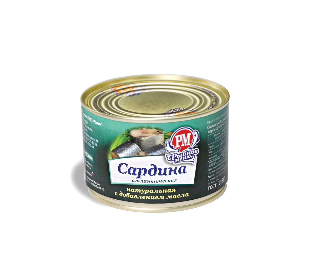 4610000620090 САРДИНА РЫБНОЕ МЕНЮ №6У АТЛАНТ. НАТ. С ДОБАВЛЕНИЕМ МАСЛА 250 Г ЖБАН.