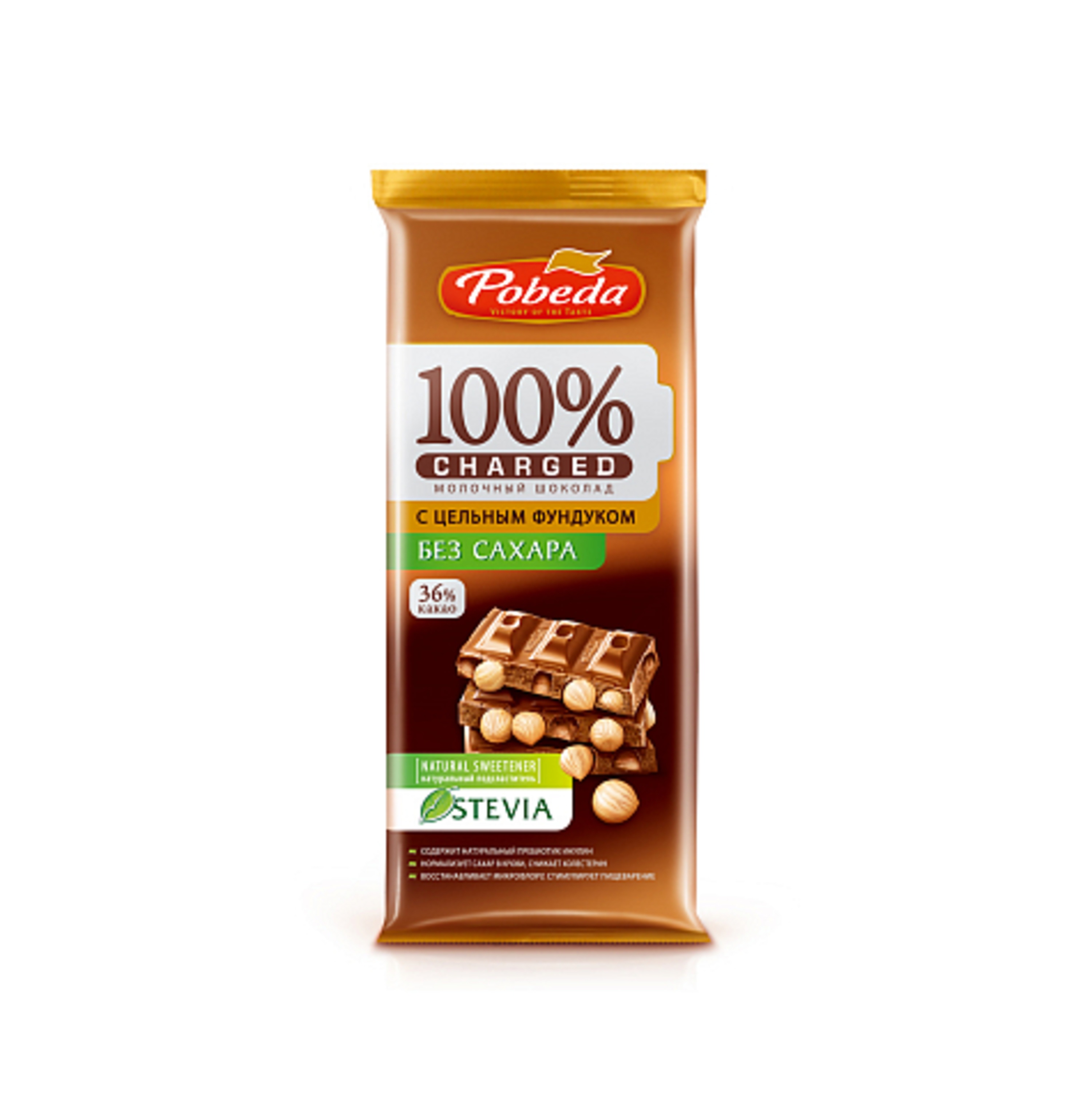 4610082660076 ШОК. ПОБЕДА CHARGED МОЛОЧНЫЙ БЕЗ САХ. С ЦЕЛЬНЫМ ФУНДУКОМ 90 Г