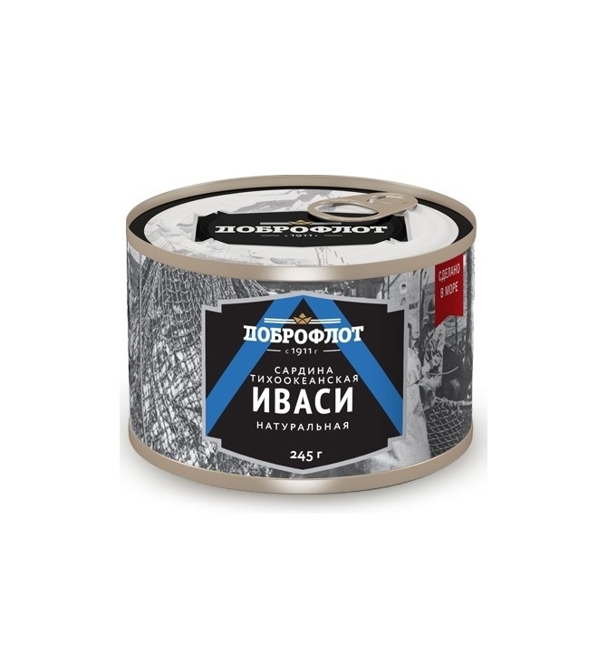 4680009030619 САРДИНА ДОБРОФЛОТ ТИХООКЕАНСКАЯ НАТУРАЛЬНАЯ ИВАСИ 245 Г ЖБАН.