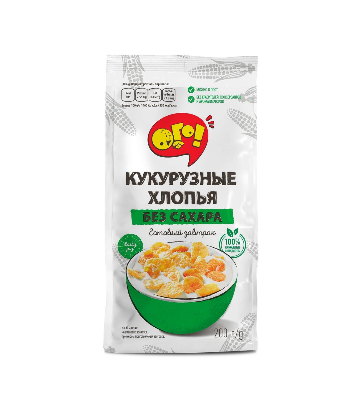 4771395192026 ЗАВТРАК СУХОЙ ОГО КУКУРУЗНЫЕ ХЛОПЬЯ БЕЗ САХАРА 200 Г