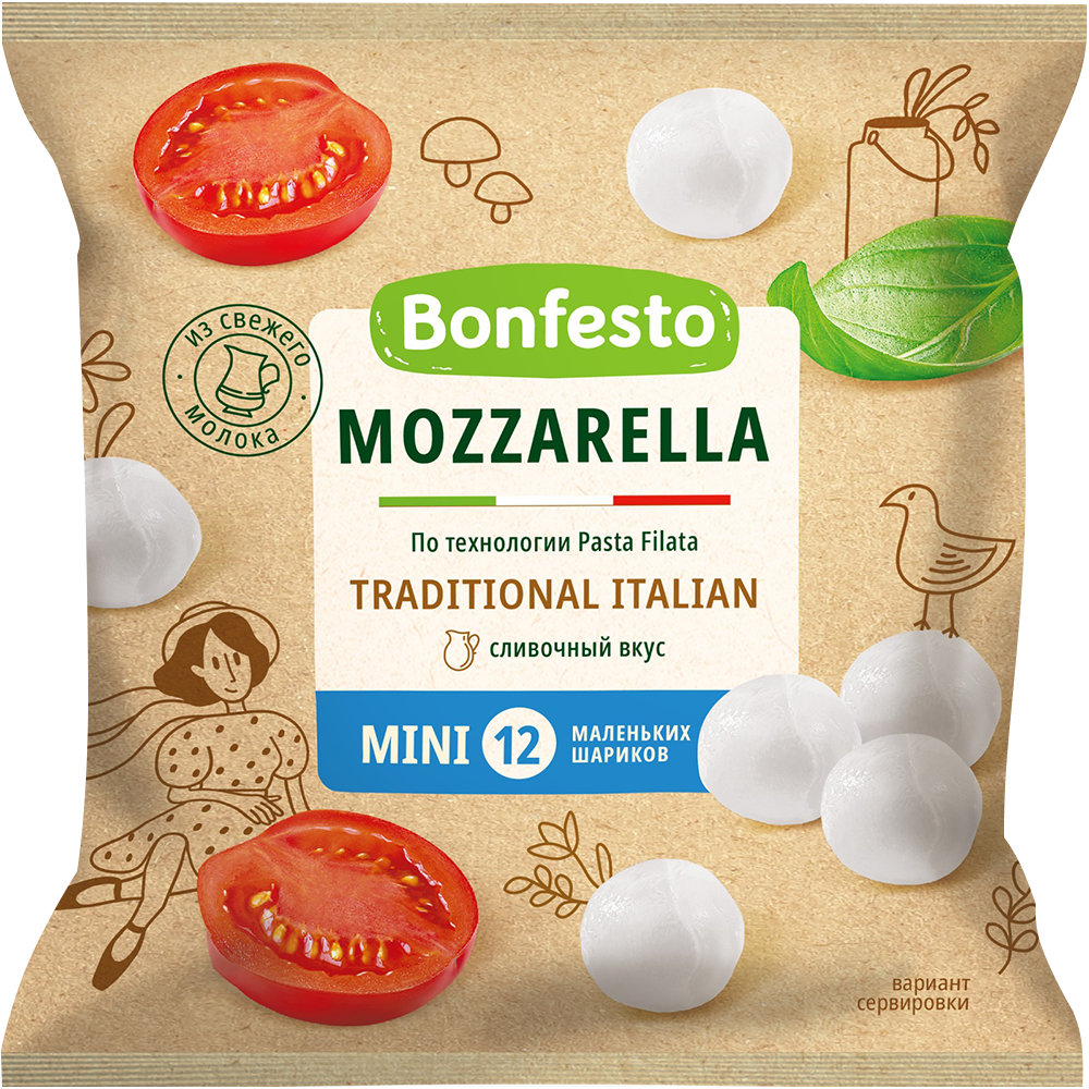 4810898003139 182338 СЫР BONFESTO MOZZARELLA MINI МЯГКИЙ 12 ШАРИКОВ 45% 100ГР Ф П