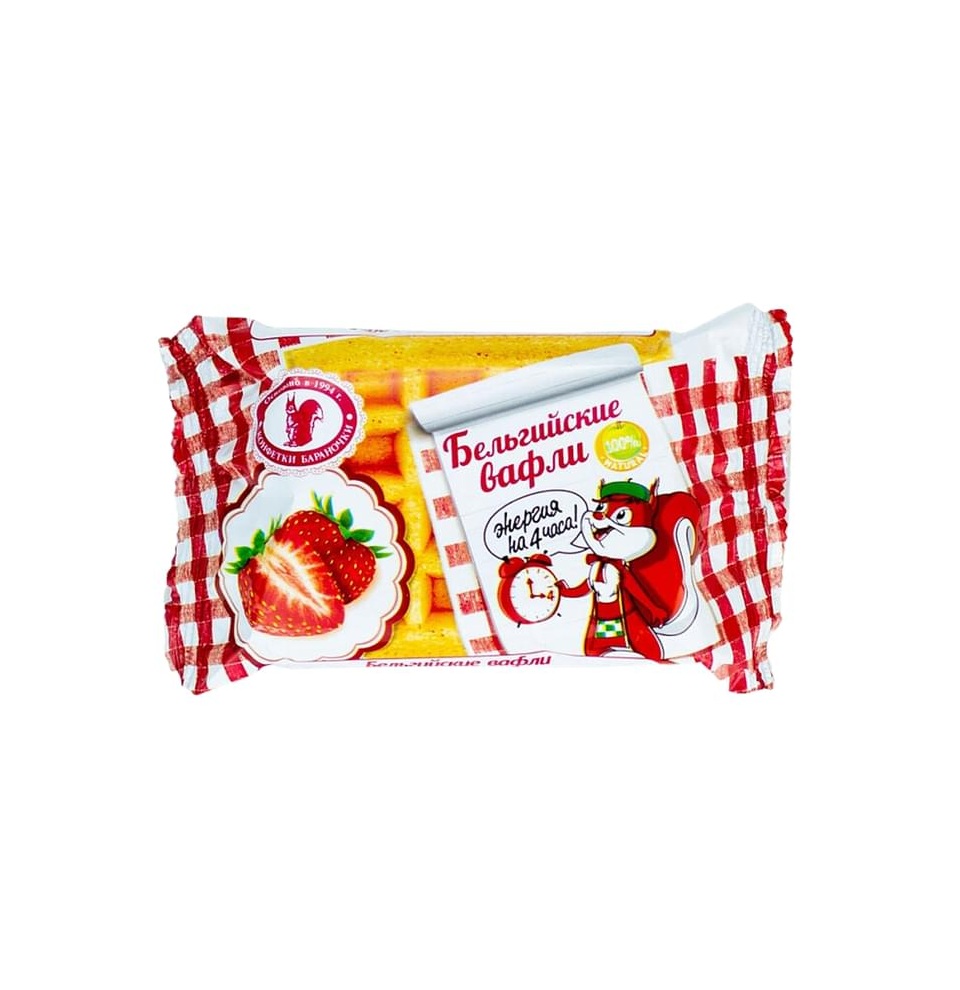 4870004451872 ВАФЛИ КОНФЕТКИ БАРАНОЧКИ БЕЛЬГИЙСКИЕ КЛУБНИКА 65 Г