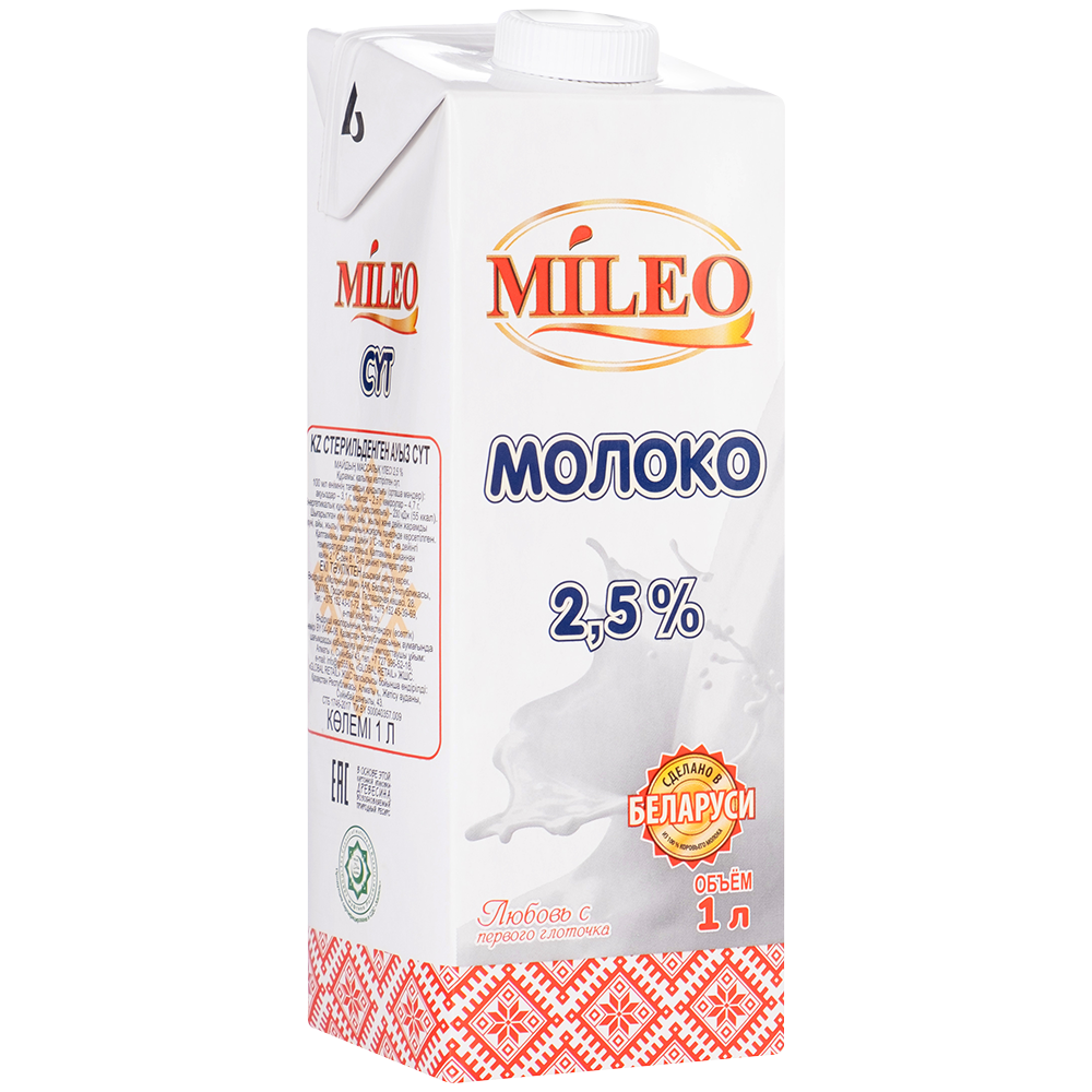 4870006981490 387414 МОЛОКО MILEO 2,5% 1Л ТТ Б
