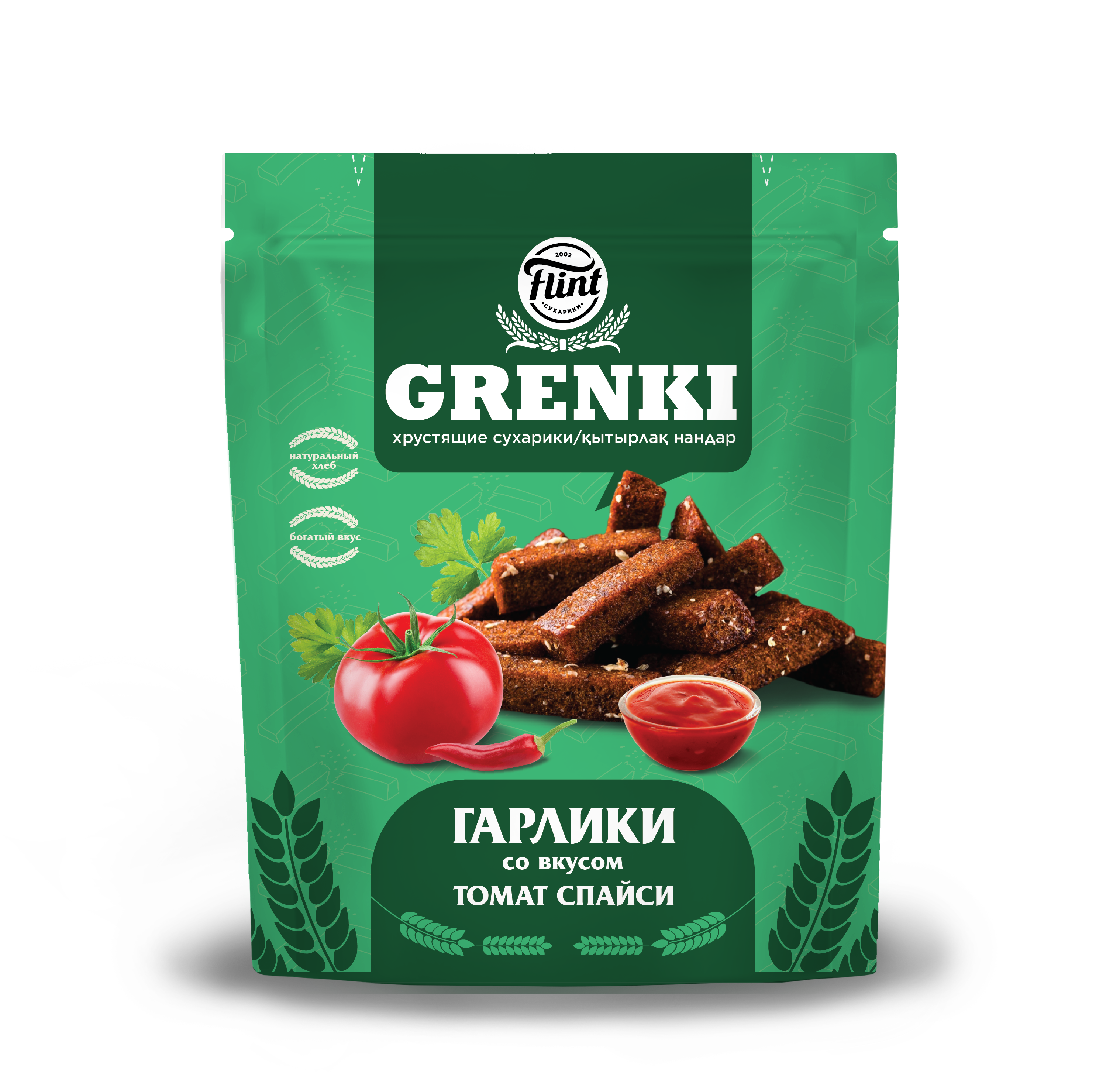 4870209746889 ГРЕНКИ ГАРЛИКИ FLINT СО ВКУСОМ ТОМАТ СПАЙСИ 90 Г ПАК.