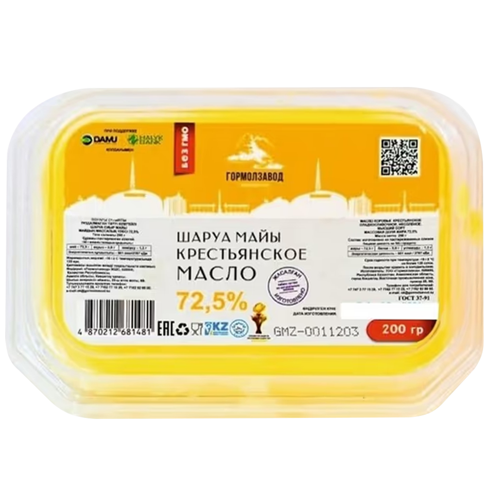 4870212681481 316391 МАСЛО СЛИВОЧНОЕ ГОРМОЛЗАВОД 72.5% 200ГР ПЭТ