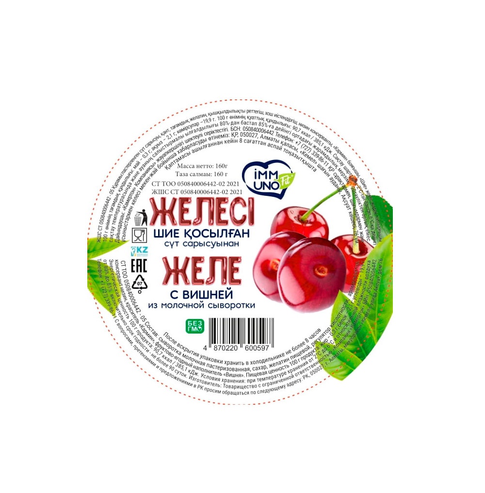4870220600597 ЖЕЛЕ IMMUNO FIT ВИШНЯ МОЛОЧНАЯ СЫВОРОТКА 140 Г