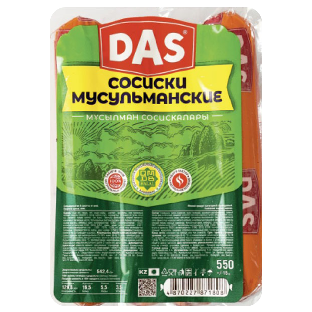 4870227871808 305403 СОСИСКИ DАS МУСУЛЬМАНСКИЕ ВАРЕНЫЕ ШТ В У