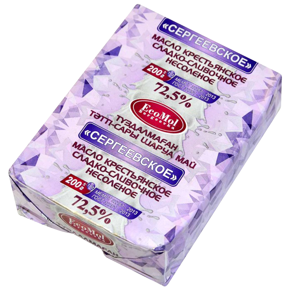 4870237730164 388109 МАСЛО СЕРГЕЕВСКОЕ КРЕСТЬЯНСКОЕ СЛАД СЛИВОЧ 72,5% 200ГР КНВРТ