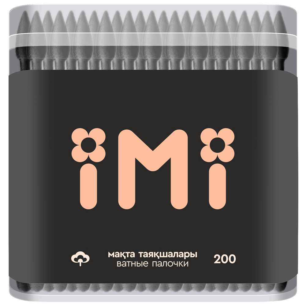 4870247057077 390652 ПАЛОЧКИ ВАТНЫЕ IMI ЧЕРНЫЕ 200ШТ КОР
