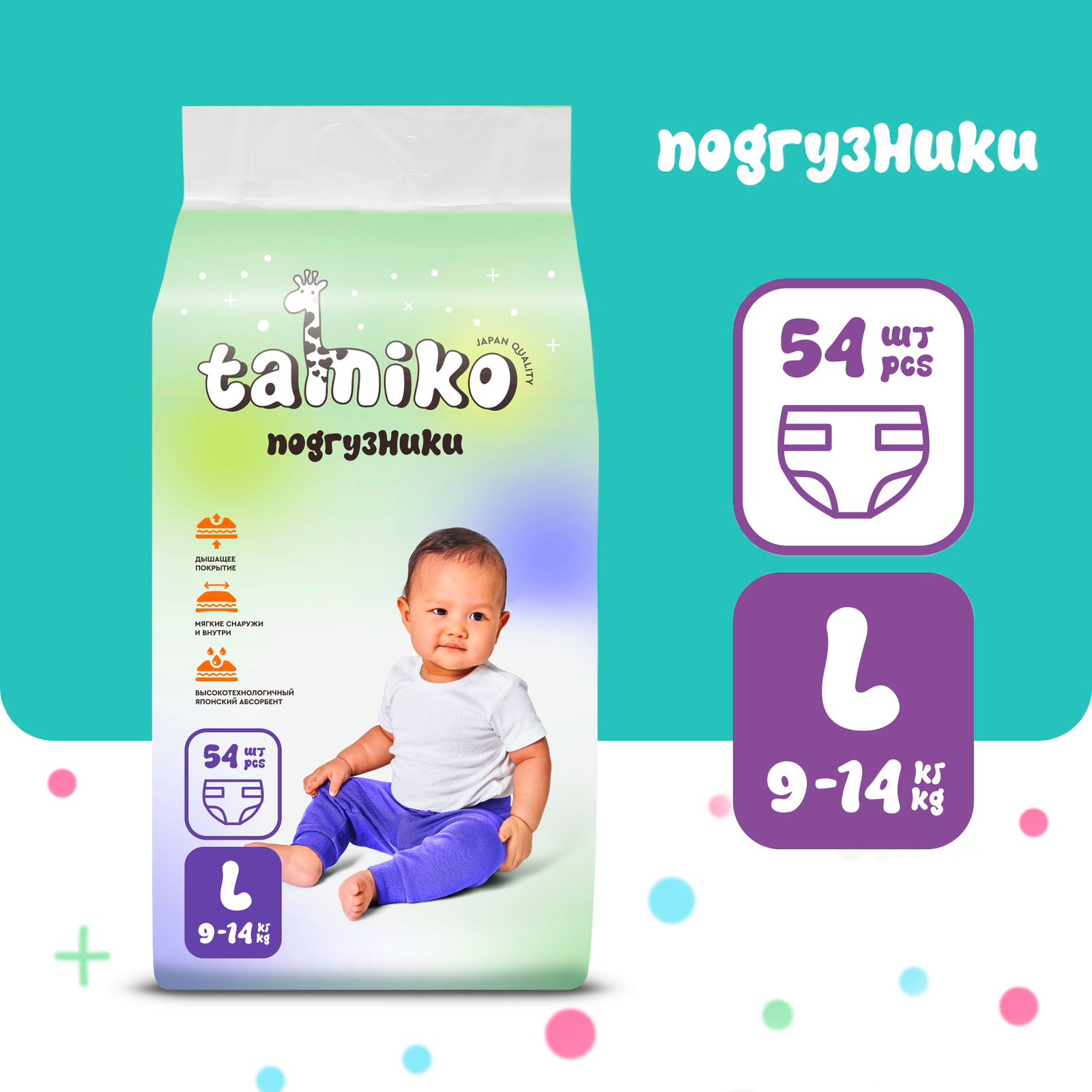4902301326543 ПОДГУЗНИКИ TAMIKO L 9 14КГ 54ШТ