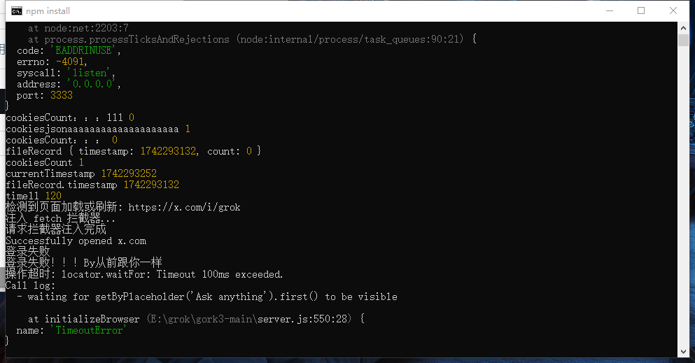 Check the error report for more information.