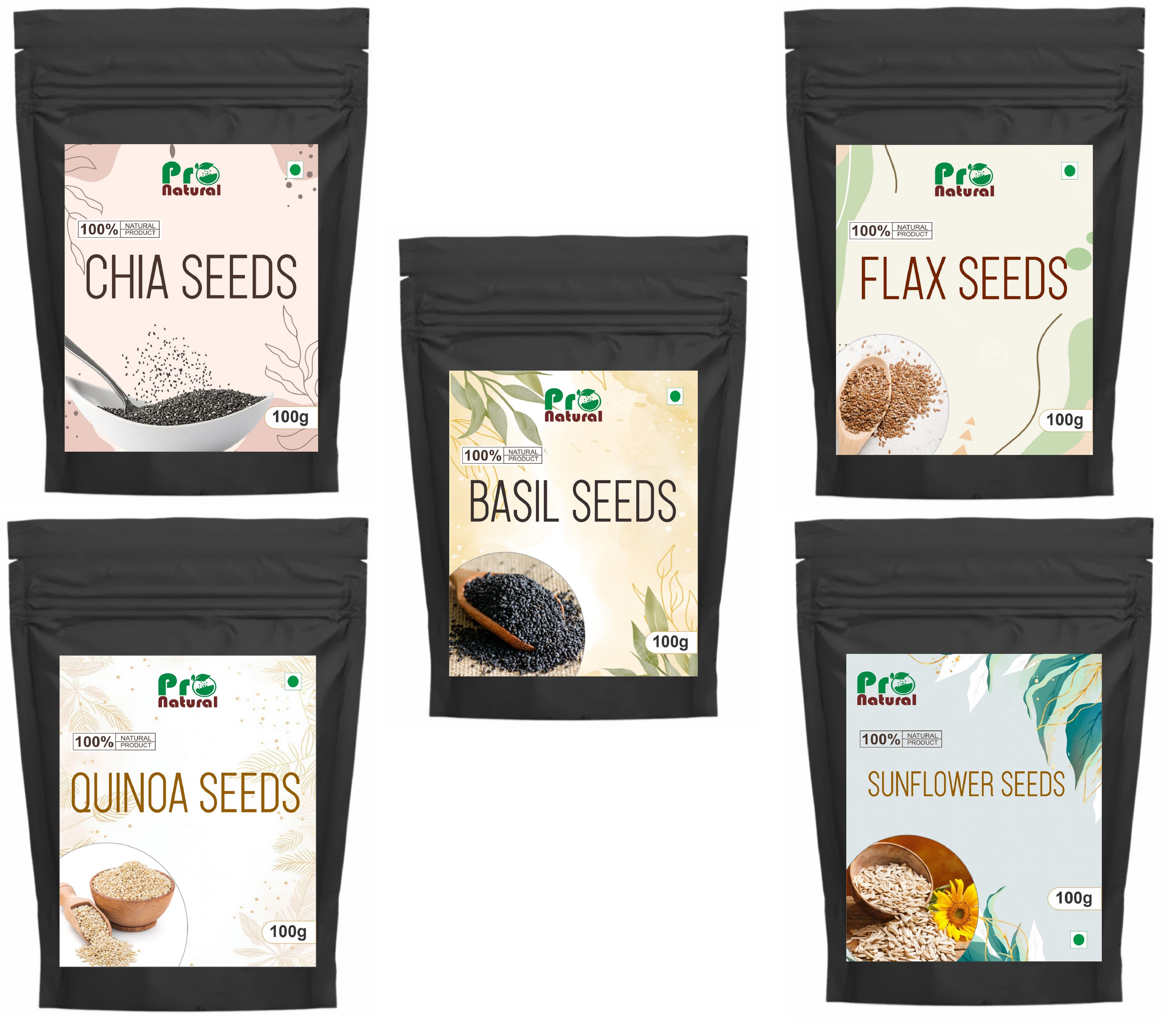 5 100g Chia Basil Flax Sun Quinoa